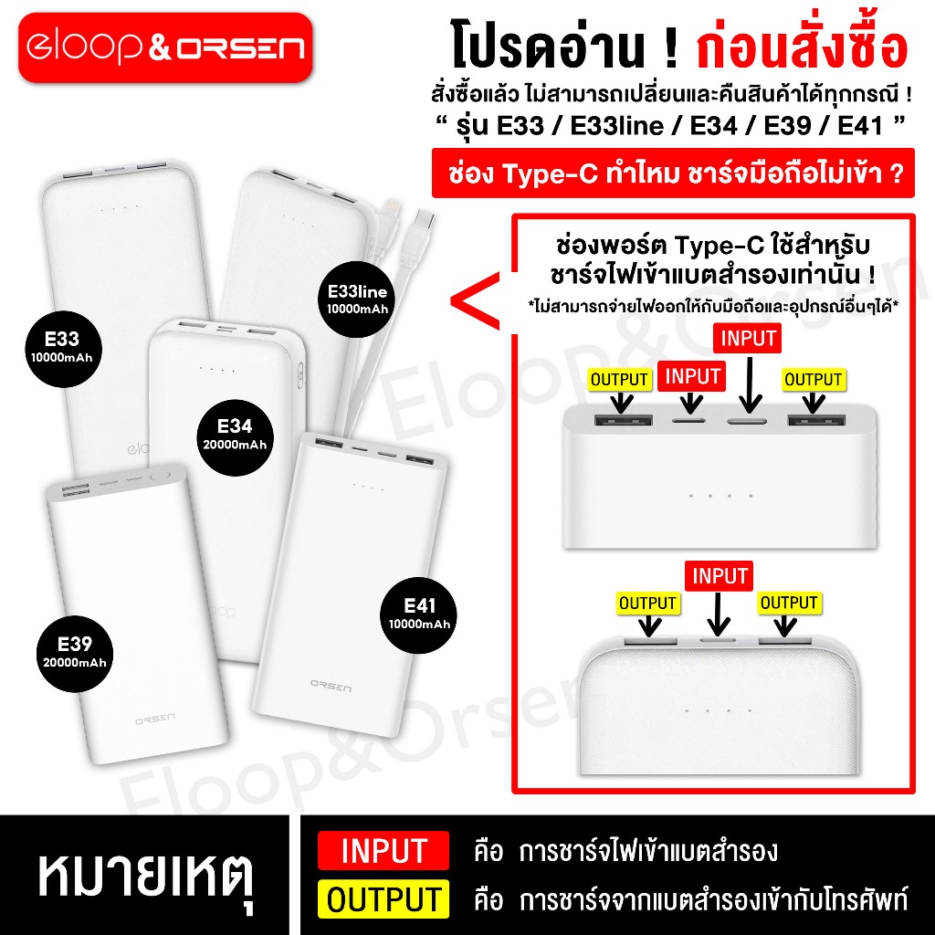 [ติดตาม รับส่วนลด] Eloop E33 / E33 Line แบตสำรอง 10000mAh ช่อง Type C ชาร์จไฟเข้าเเบตสำรองเท่านั้น!