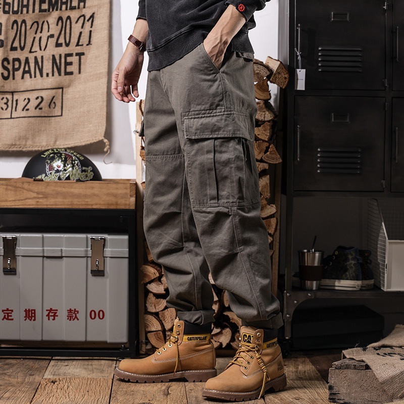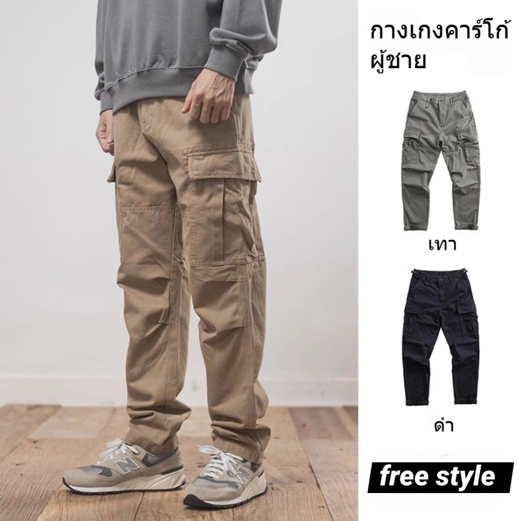 กางเกงคาร์โก้ผู้ชาย กางเกงขากระบอก เอวยางยืด ใส่สบาย กางเกงทรงหลวม ไม่มีกระเป๋าด้านหลัง จัดส่งรวดเร็ว!!