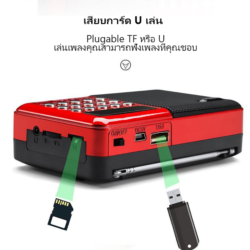 เครื่องเล่นเพลง ลําโพงวิทยุ FM ขนาดเล็ก แบบพกพา การ์ด TF เครื่องอ่านดิสก์ U พร้อมแบตเตอรี่ แบบชาร์จไฟได้ 18650 แบตเตอรี่ในตัว สุดคุ้ม