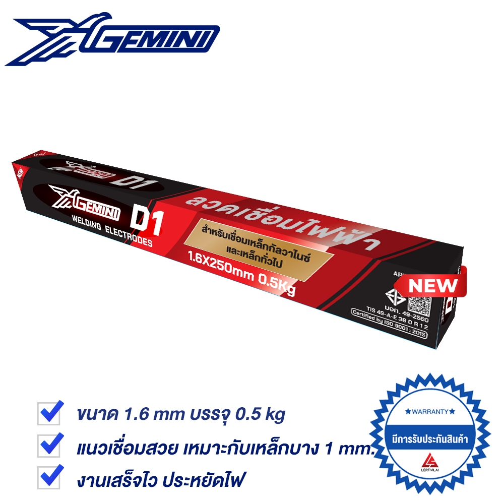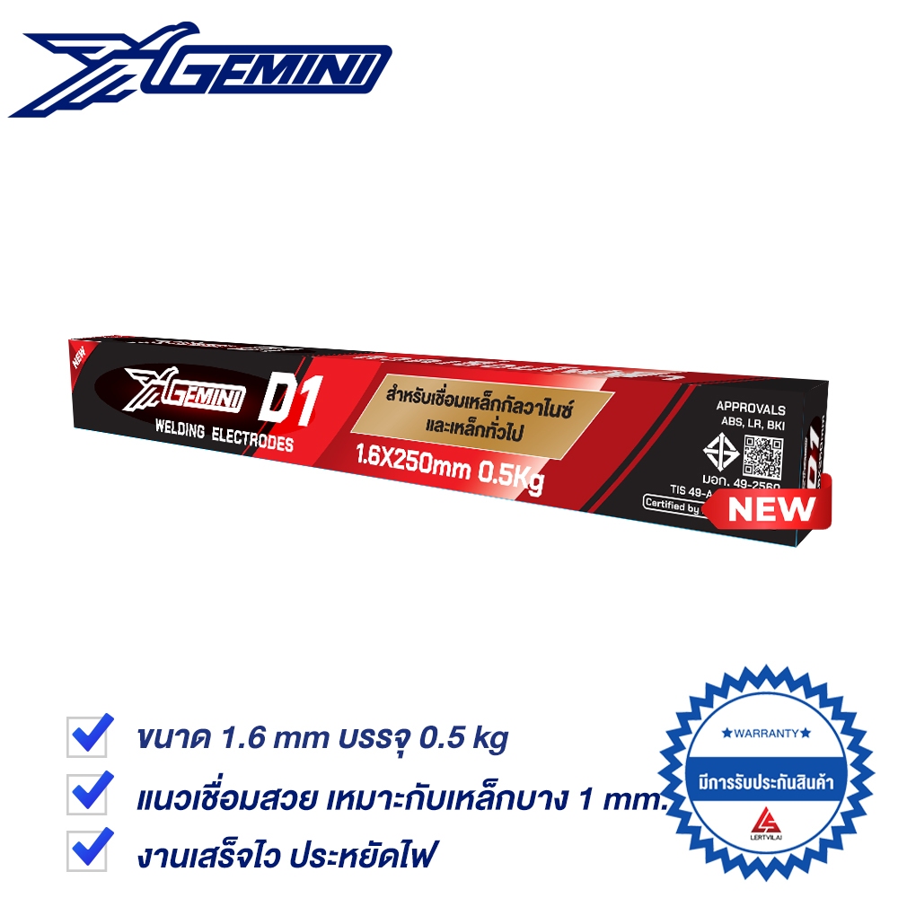 GEMINI ลวดเชื่อมไฟฟ้า D1 1.6x 250 มม 0.5 กิโล เจมินี่ ดี1