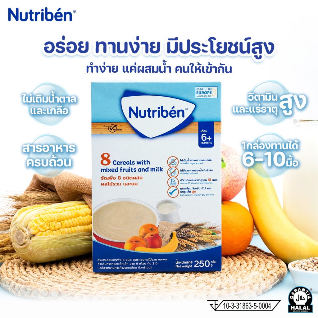 [แพ็คคู่ 250g x 2] นิวทริเบน สูตรธัญพืช 8 ชนิดผสมผลไม้รวม และนม อาหารเด็ก 6 เดือนขึ้นไป 250g มีฮาลาล