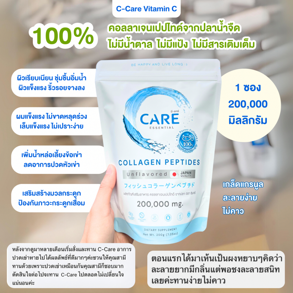 *ซื้อ 3 แถม 1* ซี-แคร์ คอลลาเจน ขนาด 200 กรัม จำนวน 3 ซอง แถม 1 ซอง