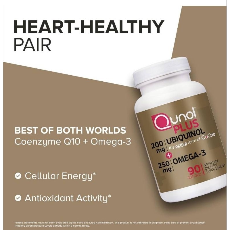 ✨️พร้อมส่ง✨️Qunol Plus Ubiquinol CoQ10 200mg with 250mg Omega-3, 90 Count