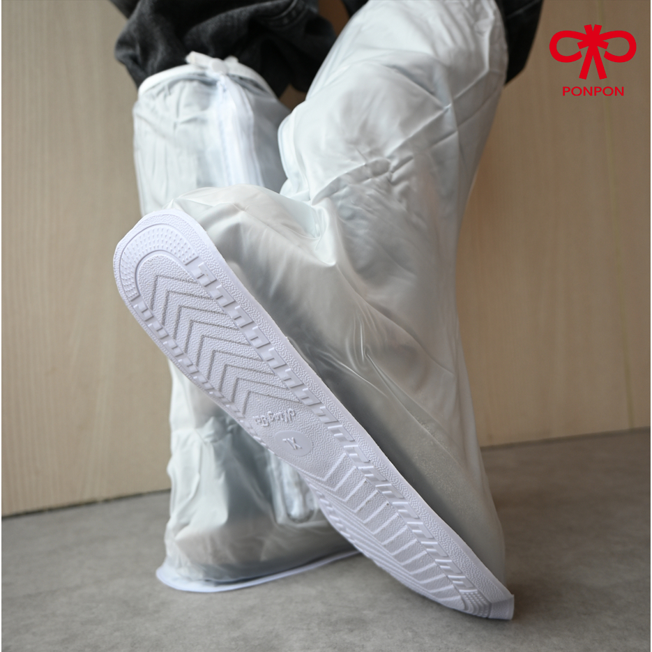 PONPON ถุงคลุมรองเท้ากันฝนสูงพิเศษ กันลื่น กันน้ำ 100% PVC หนาพิเศษ แพคคู่ 2 ชิ้น