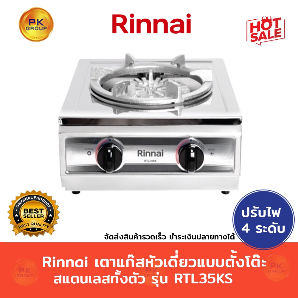 Rinnai เตาแก๊ส หัวเดี่ยวแบบตั้งโต๊ะ สแตนเลสทั้งตัว รุ่น RTL35KS