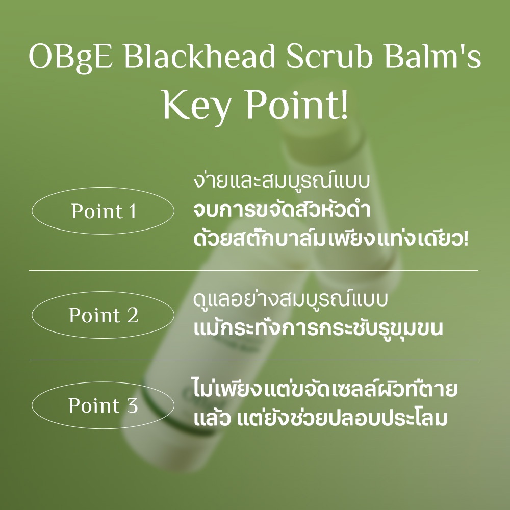 [OBgE Official] Blackhead Scrub Balm 20g | แบล็คเฮดสติ๊ก All-in-One | ดูแลสิวเสี้ยนอ่อนโยน | ลดรูขุมขน | ขจัดเซลล์ผิวที่ตายแล้ว | ปลอบประโลมผิว | ให้ความชุ่มชื้น