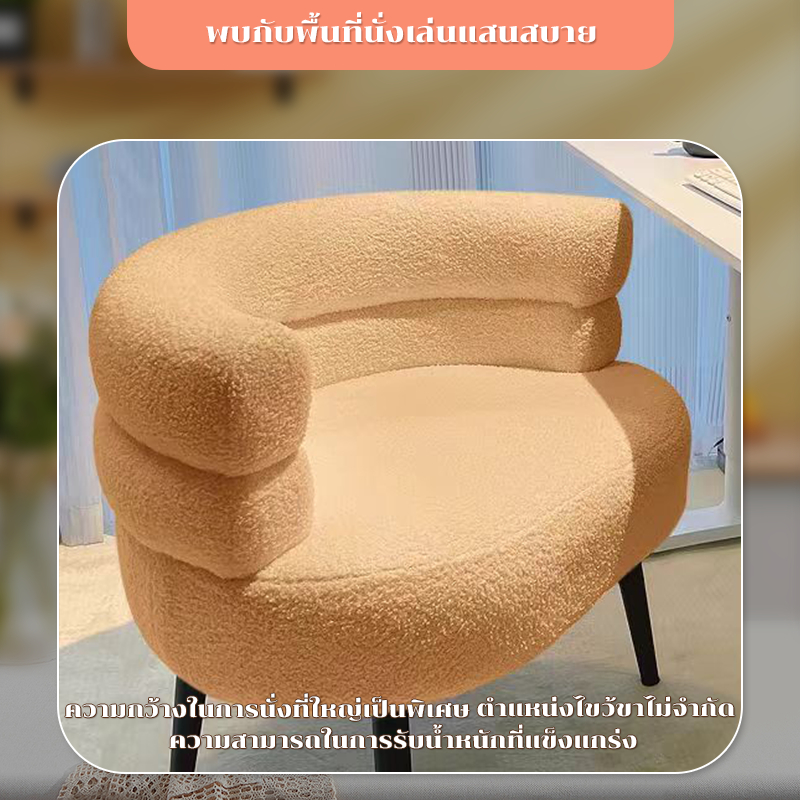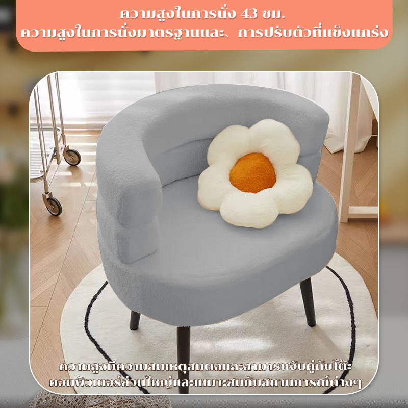 เก้าอี้โซฟา เก้าอี้แต่งหน้า เก้าอี้โต๊ะเครื่องแป้ง วัสดุแคชเมียร์ สไตล์เรียบง่ายและสะดวกสบาย