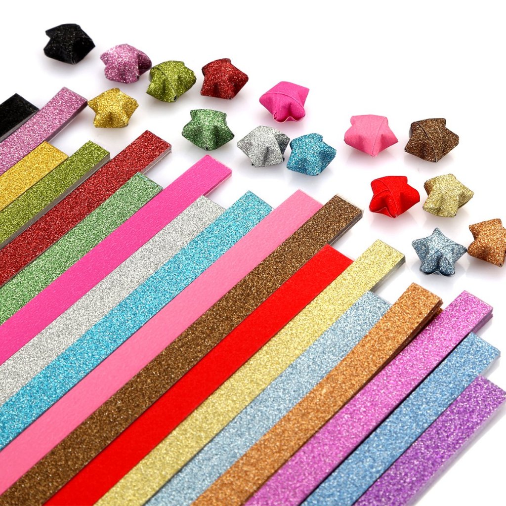 กระดาษพับดาว กากเพชร (origami lucky star) หลากสีสันไล่โทนสี มีแบบ90แผ่นกับ520แผ่น แฮนด์เมด สําหรับตกแต่ง สินค้าพร้อมส่ง