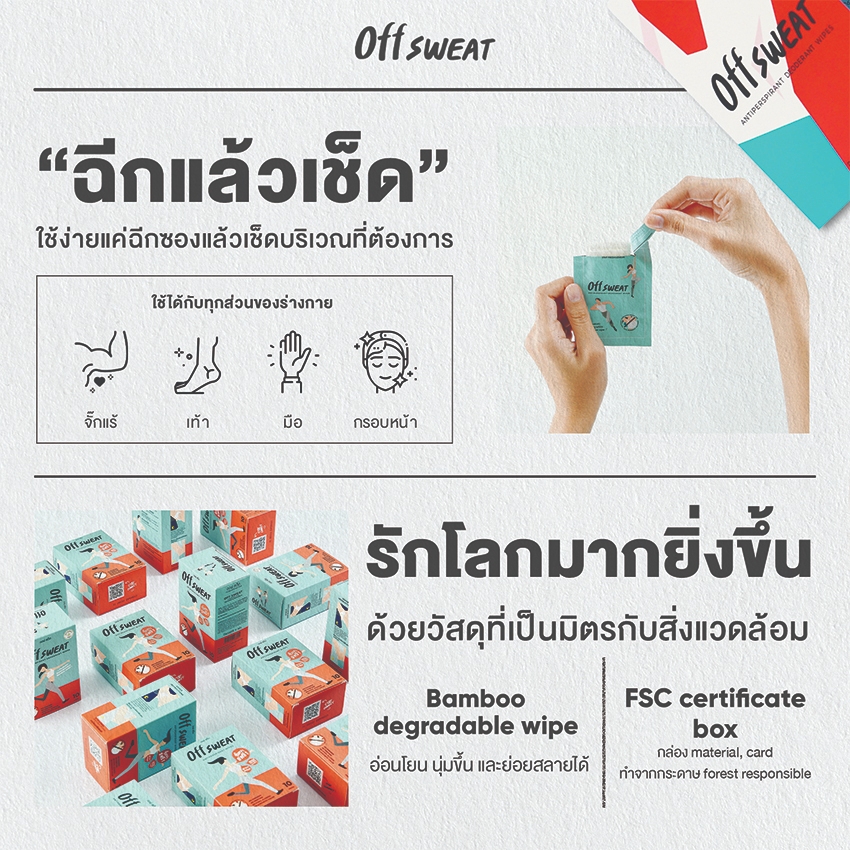 OFF SWEAT ORIGINAL/OFF SWEAT BAMBOO WIPES/ Offsweat Organic Whitening แผ่นระงับกลิ่นกาย โรลออน ผิวกระจางใส