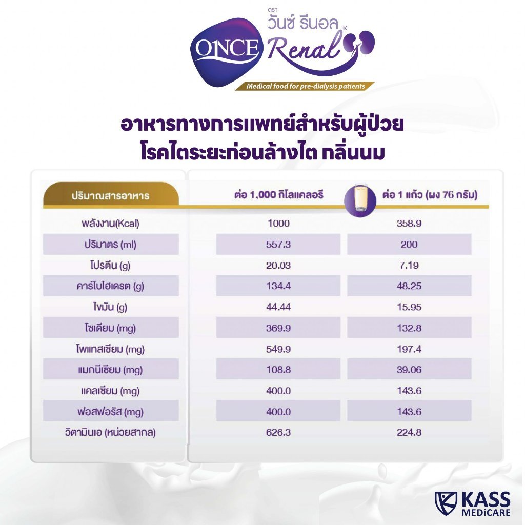 *ONCE Renal วันซ์ รีนอล 400g. อาหารทางการแพทย์สำหรับผู้ป่วยโรคไตระยะก่อนล้างไต
