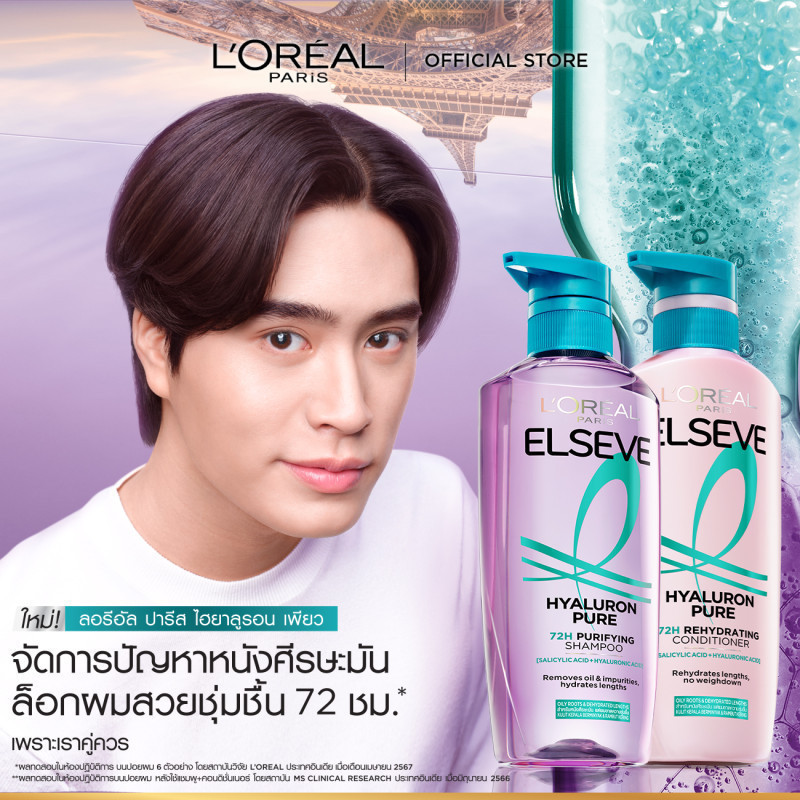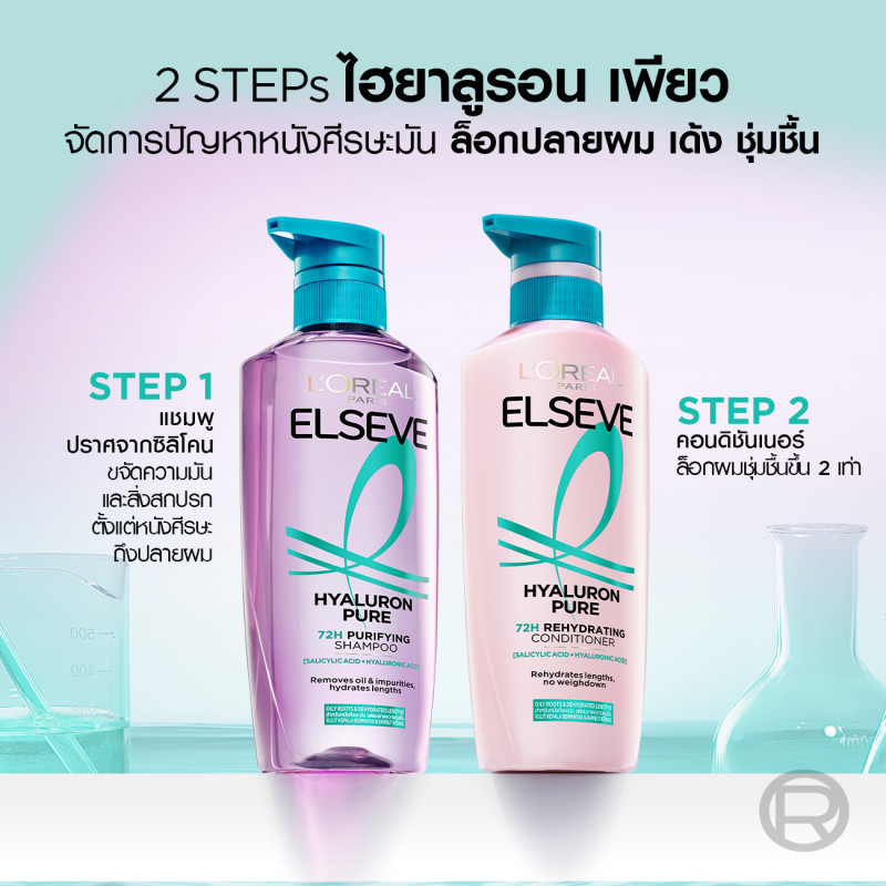 [แพ็กคู่] L'Oréal Paris Elseve Hyaluron Pure 72H Purifying แชมพู620ml + ครีมนวด375ml สำหรับหนังศีรษะมันผมขาดความชุ่มชื้น