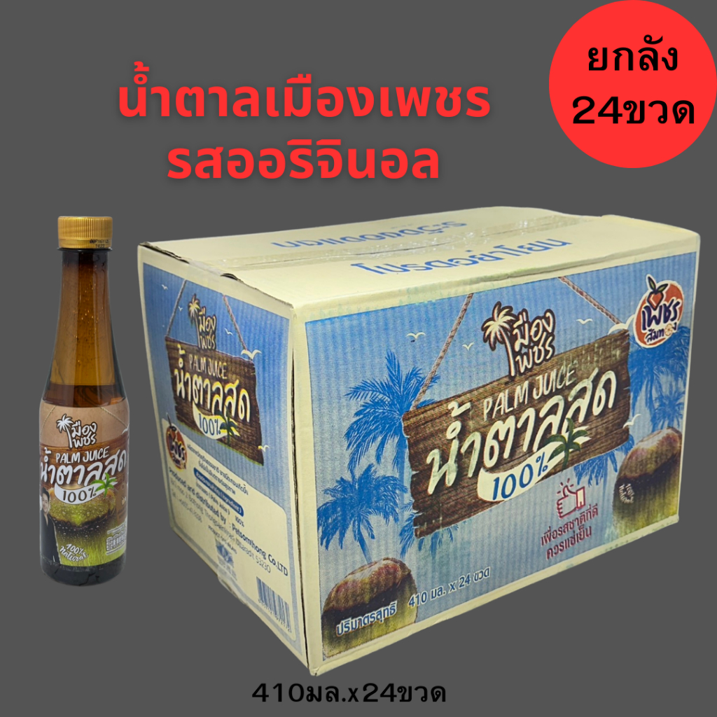น้ำตาลสด100%เมืองเพชร ขนาด410มล.(ยกลัง24ขวด) เครื่องดื่มน้ำตาลสด แท้ 100% เพชรบุรียกลัง24ขวด