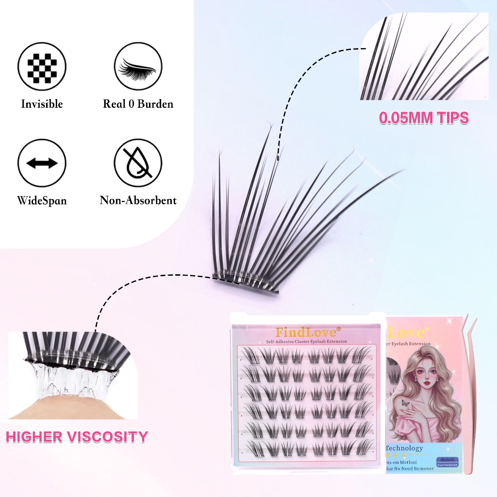 FindLove Glue Free Eyelash Natural Fox ไม่ต้องใช้กาว! 3sTo Wear Self-Adhesive Lashes Instant Lash Lift, กันน้ําธรรมชาติ, All-Day Comfort กาวฟรีขนตาติดทนนาน