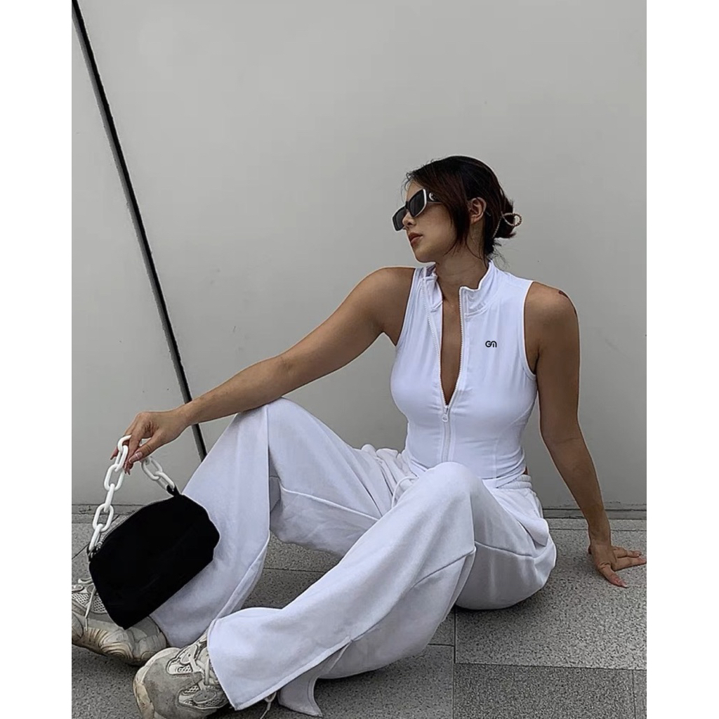 Gymmode - เสื้อคลุม sleeveless zip front เสื้อกั๊กซิปหน้า คลุมบรา ลำลอง