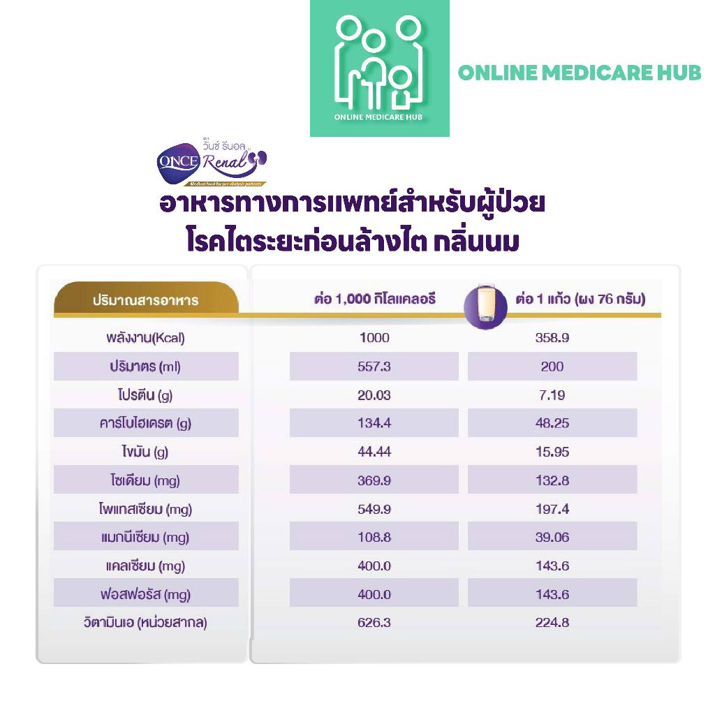 (ยกลัง) ONCE Renal วันซ์ รีนอล 400g. อาหารทางการแพทย์สำหรับผู้ป่วยโรคไต ระยะก่อนล้างไต 12 กระป๋อง