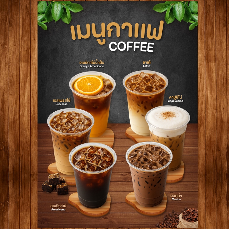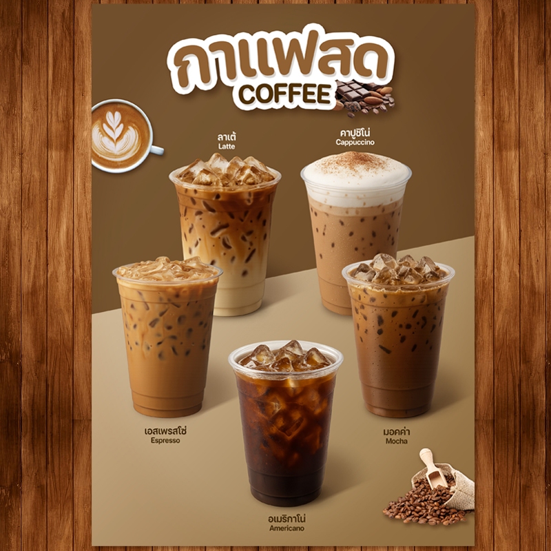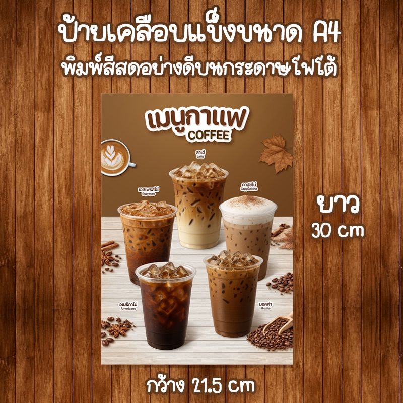 (โปสเตอร์กาแฟ) ป้ายเมนูเครื่องดื่มขนาด A4 เคลือบใสแข็ง