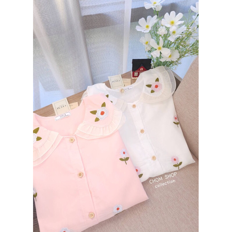 เสื้อ CHOM official คอบัว ลูกไม้ อก 42 ผ้าคอตตอน
