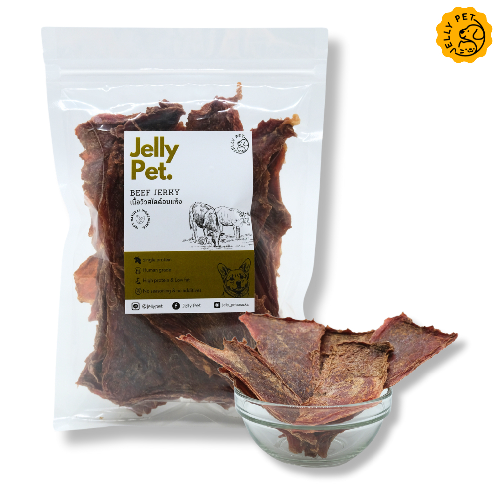 Jelly Pet Beef Jerky เนื้อวัวอบแห้ง 50-100กรัม ไม่เค็ม ไม่ปรุง ขนมสุนัขสุขภาพ ขนมแมวสุขภาพ