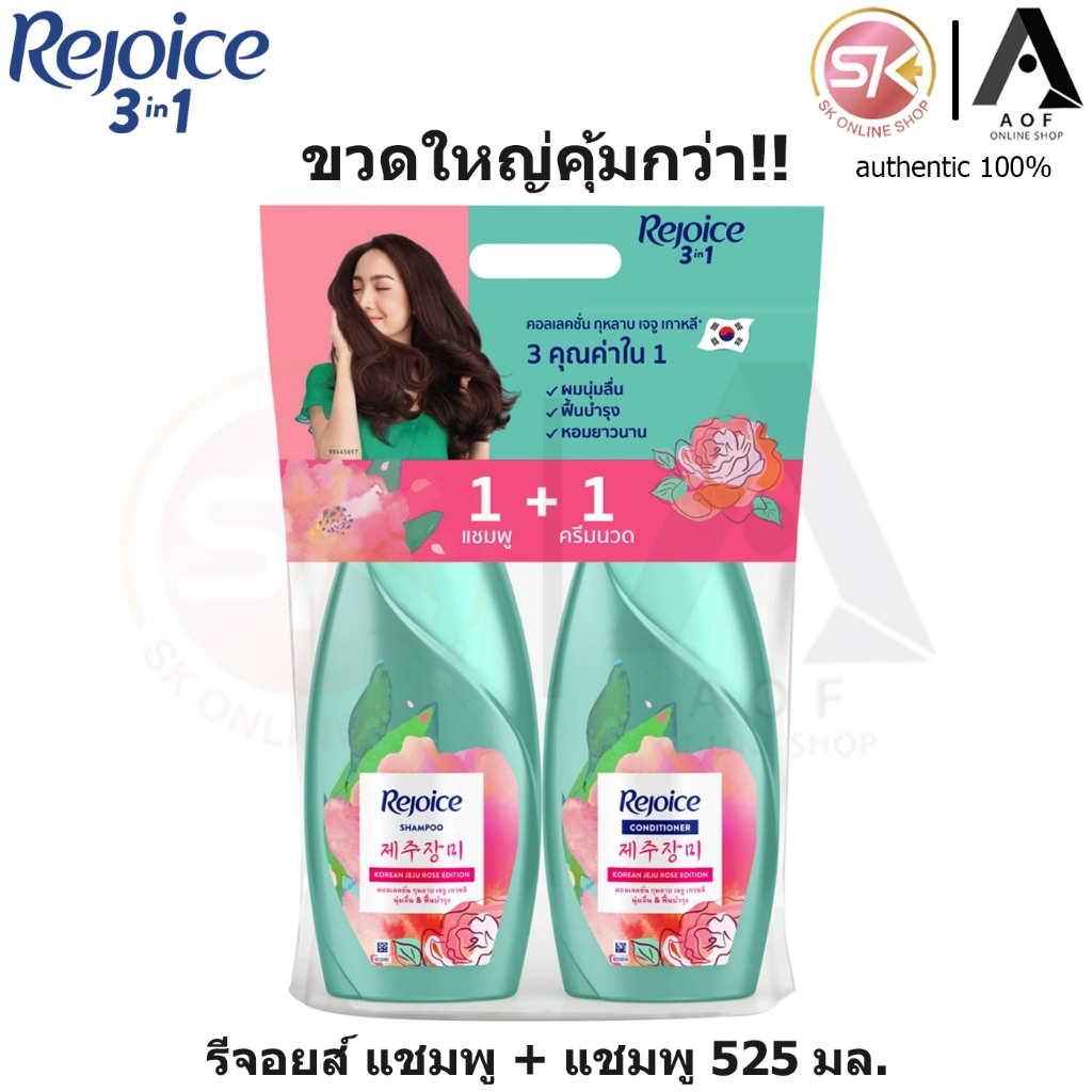 [แพ็ค1+1] Rejoice รีจอยส์ แชมพู + แชมพู , แชมพู + ครีมนวด 525 มล.