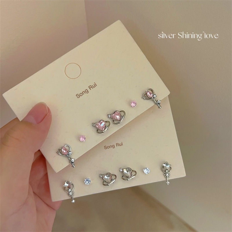 ชุดต่างหูสตั๊ด รูปผีเสื้อ หัวใจ สีทอง สีเงิน เครื่องประดับ สําหรับผู้หญิง Y2K