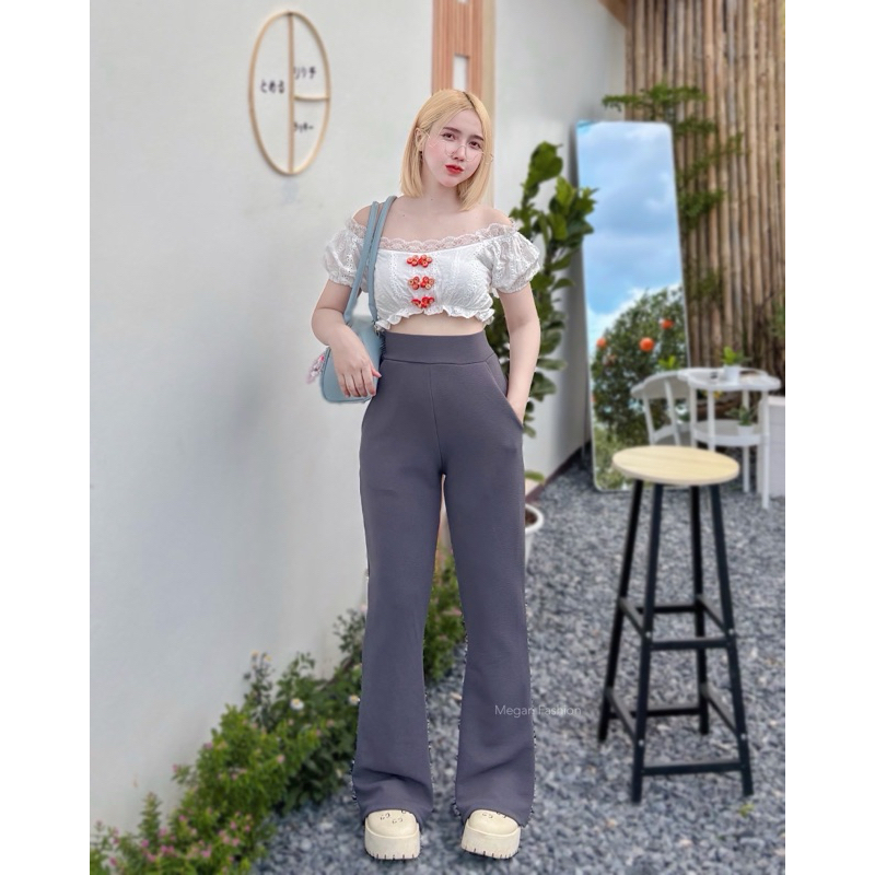 (รุ่นขาม้าเล็ก)กางเกงขาม้าขาเรียว เอวสูงมีกระเป๋า2ข้าง ผ้ายืดวูลเวฟ