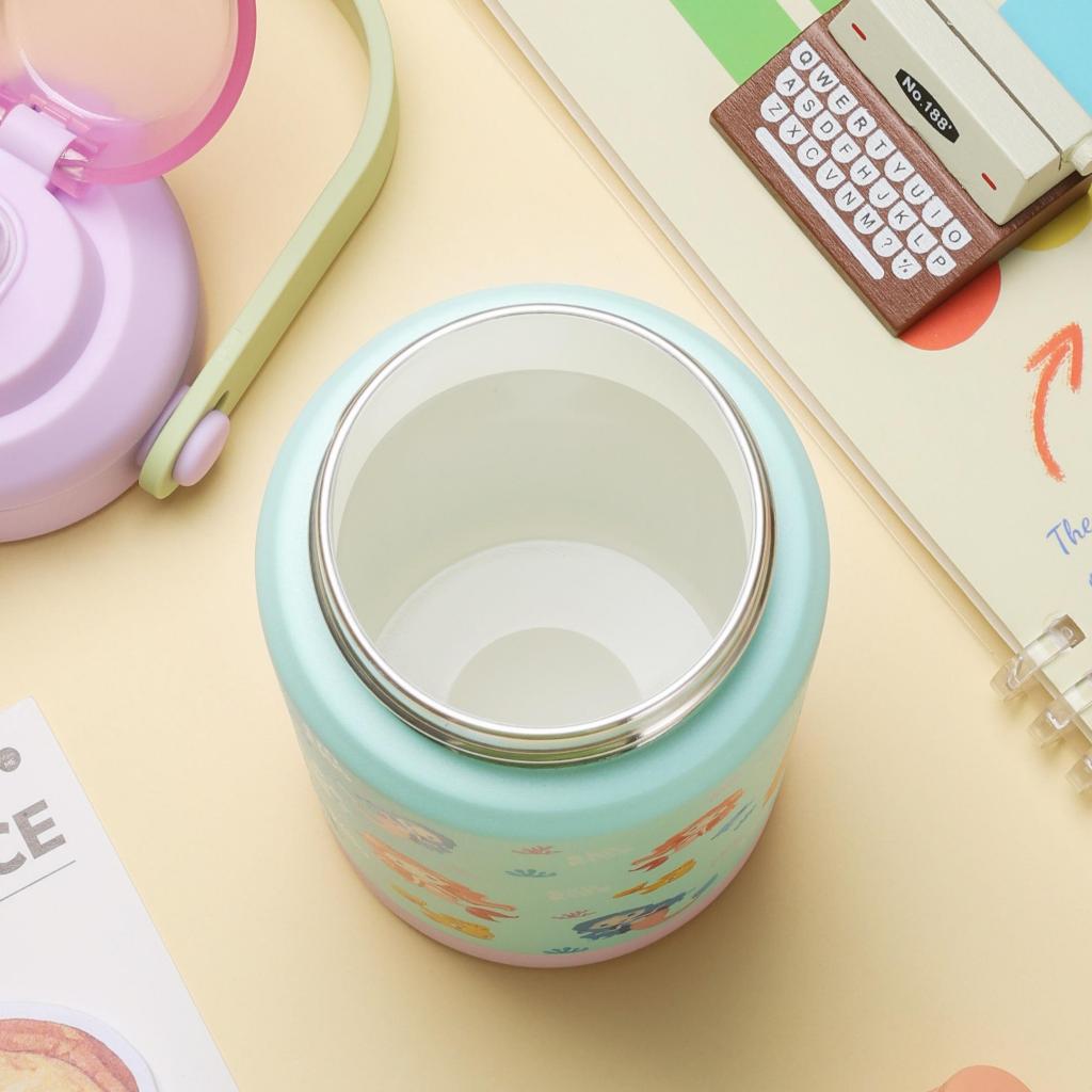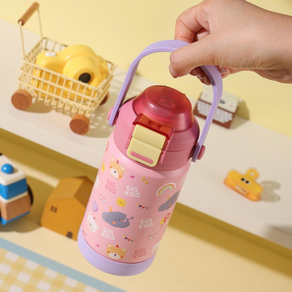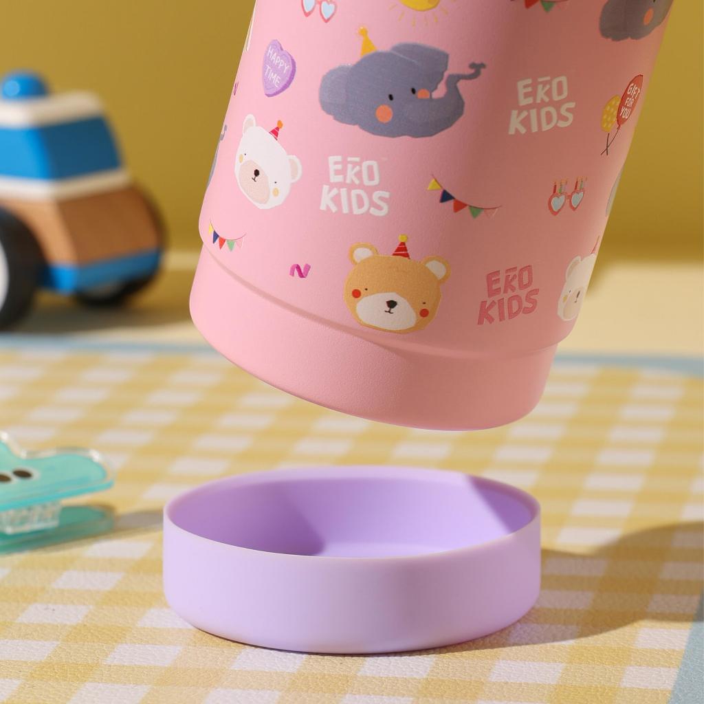 EKOZOU รุ่น EKOKIDS ขวดน้ำสแตนเลส 304 เคลือบเซรามิก ขนาด 360 มล. (12oz) ฝาสองชั้น มีหลอดดูดและหูหิ้ว ยางรองก้นขวดในตัว
