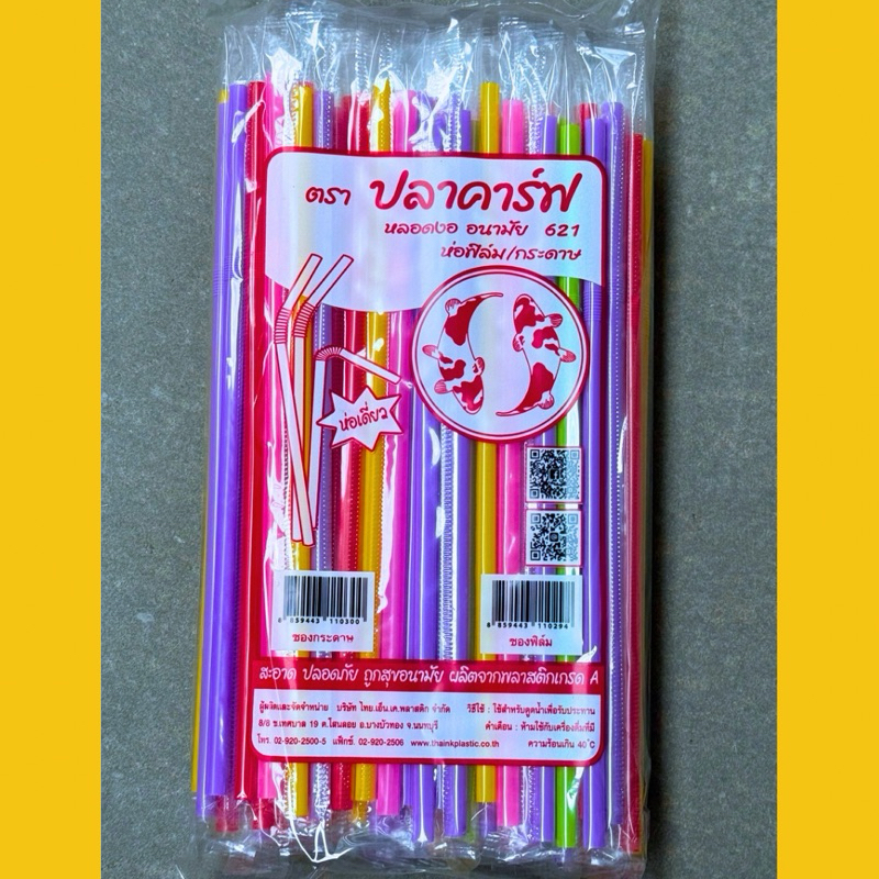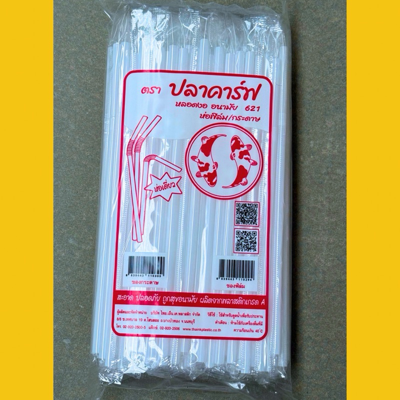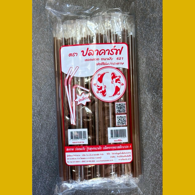 หลอดงอ 6 มิล ห่อฟิล์ม 100 เส้น / แพ็ค ตราปลาคราฟ หลอดดูดน้ำ