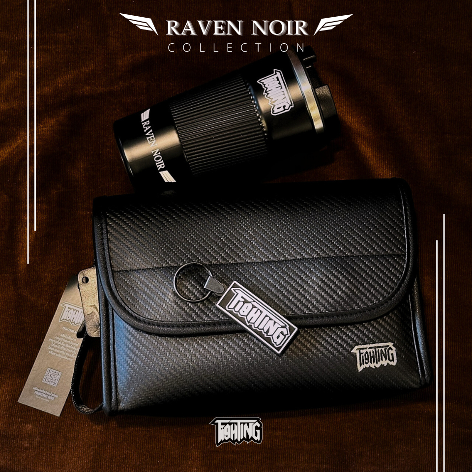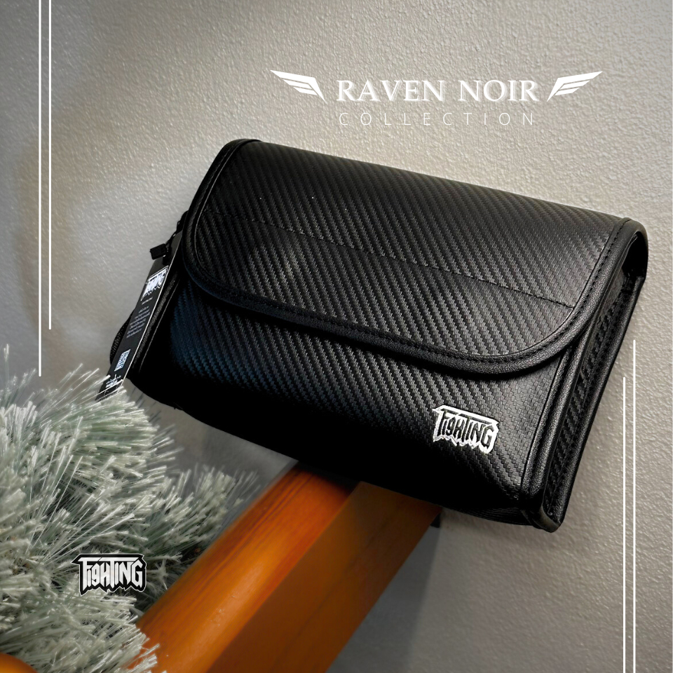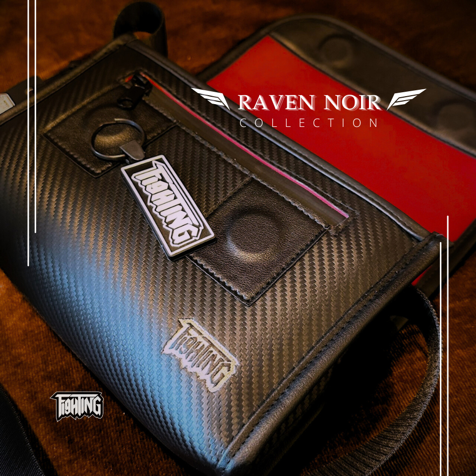 [ FIGHTING ] Raven Noir กระเป๋าสะพายข้างหนัง Premium หุ้มคาร์บอน 3D ทรงกล่อง ขนาด 9.5" ( แม่เหล็ก )