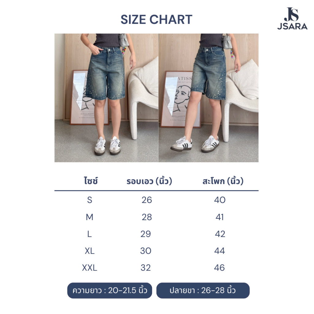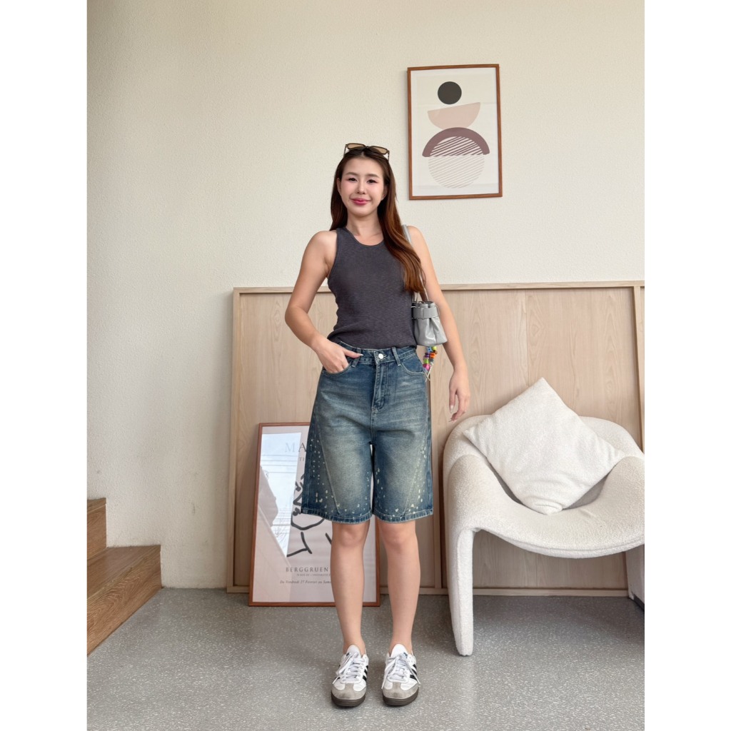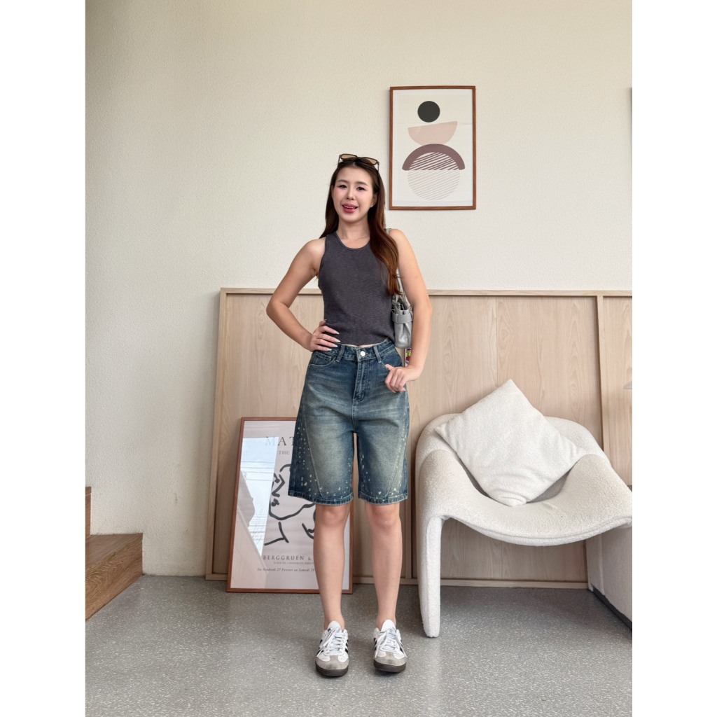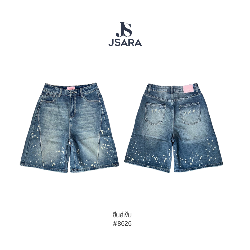 JSARA S-3XL กางเกงยีนส์สามส่วน วัยรุ่นทรงวินเทจ ผ้ายีนส์ไม่ยืด แต่งเฟดทั้งข้างหน้าและด้านหลัง ขาสั้นรหัส#8625