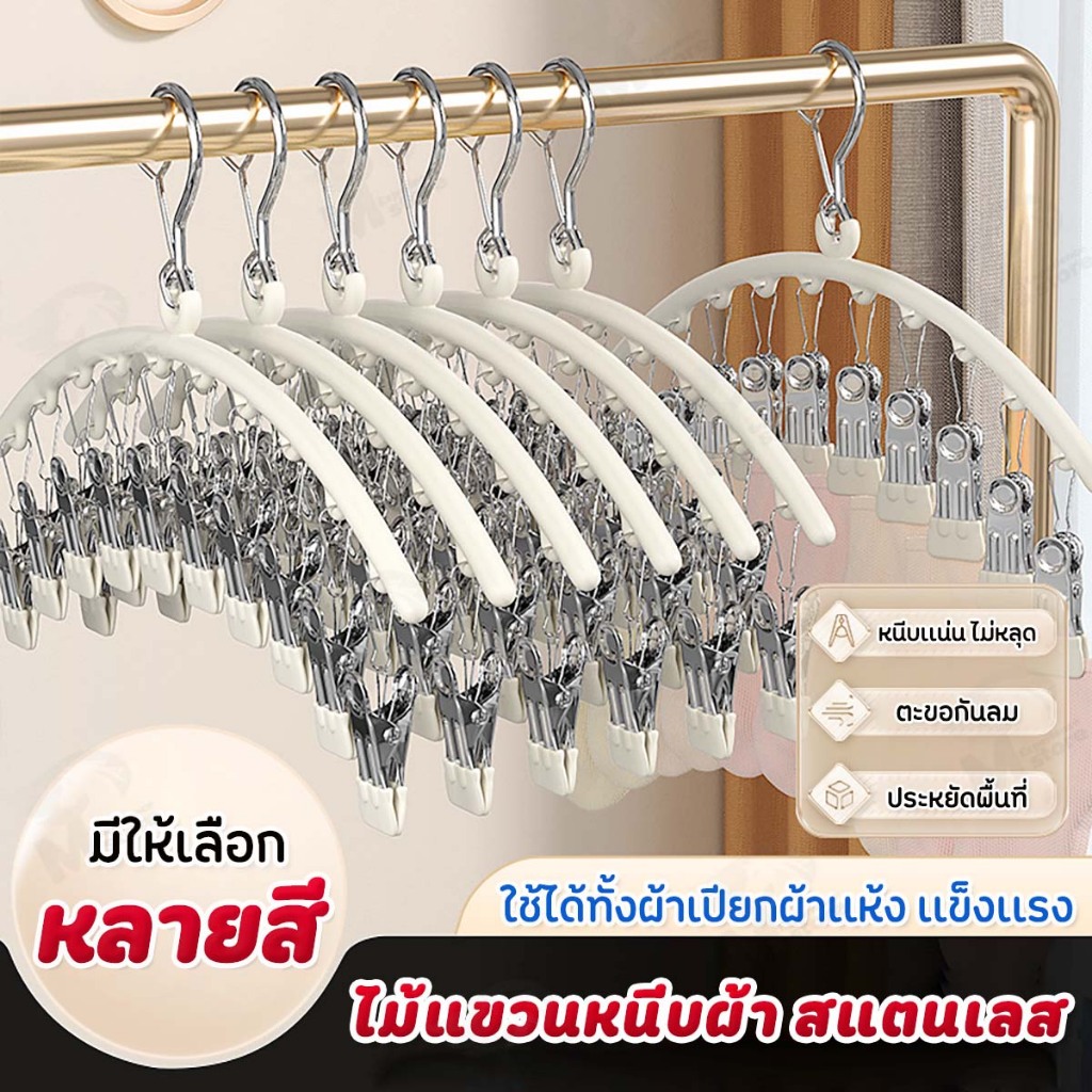 [ 1 แถม 1 ] ไม้แขวนเสื้อหนีบ ไม้เเขวนหนีบผ้าสเเตนเลส ตัวหนีบชุดชั้นใน ถุงมือ ถุงเท้า เคลือบซิลิโคน SL 2PCS
