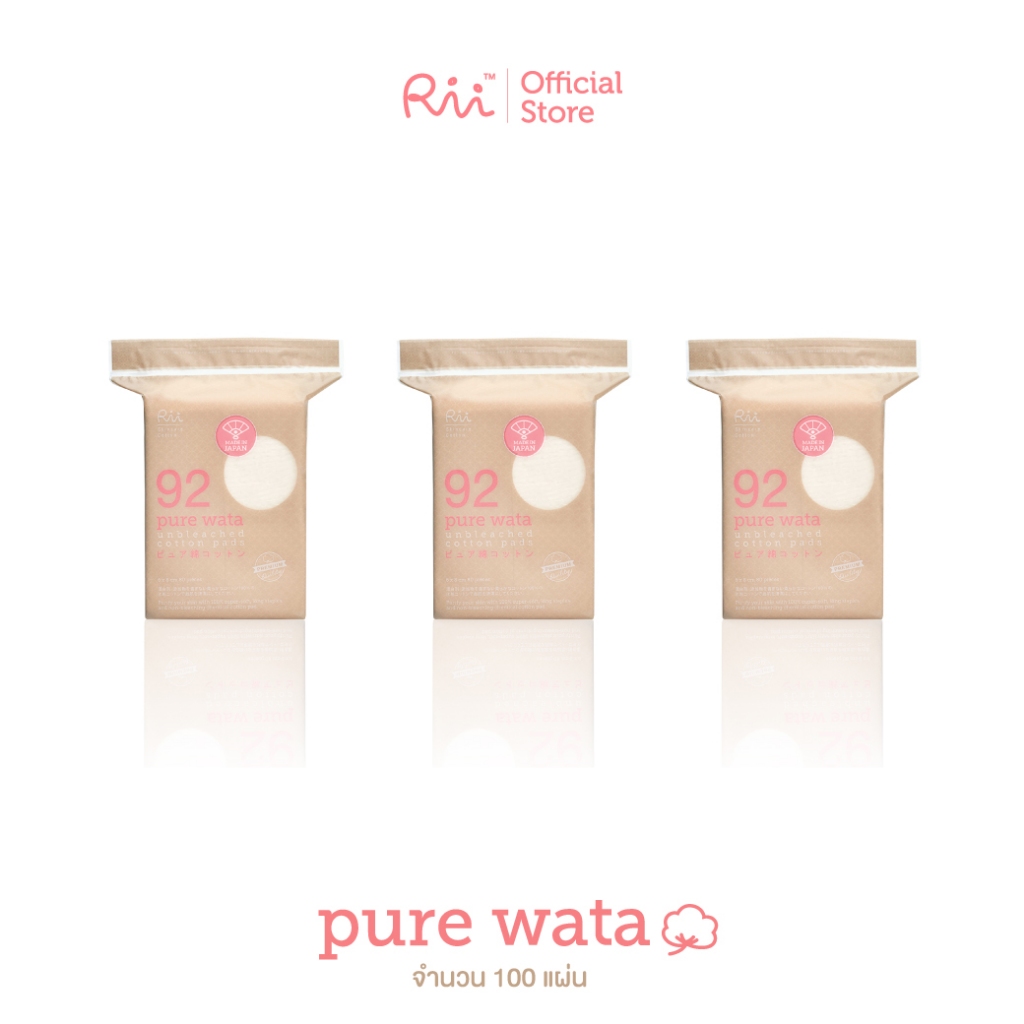 (แพ็คสาม) Rii Pure Wata Unbleached Cotton pads