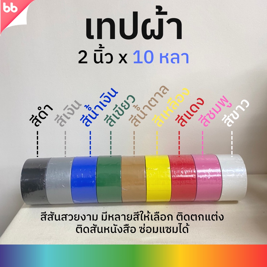 เทปผ้า 2 นิ้ว 10 หลา (ม้วน) Cloth tape Duct tape เทปแล็คซีน ตกแต่ง สีสด ทำสันหนังสือ ซ่อมแซม