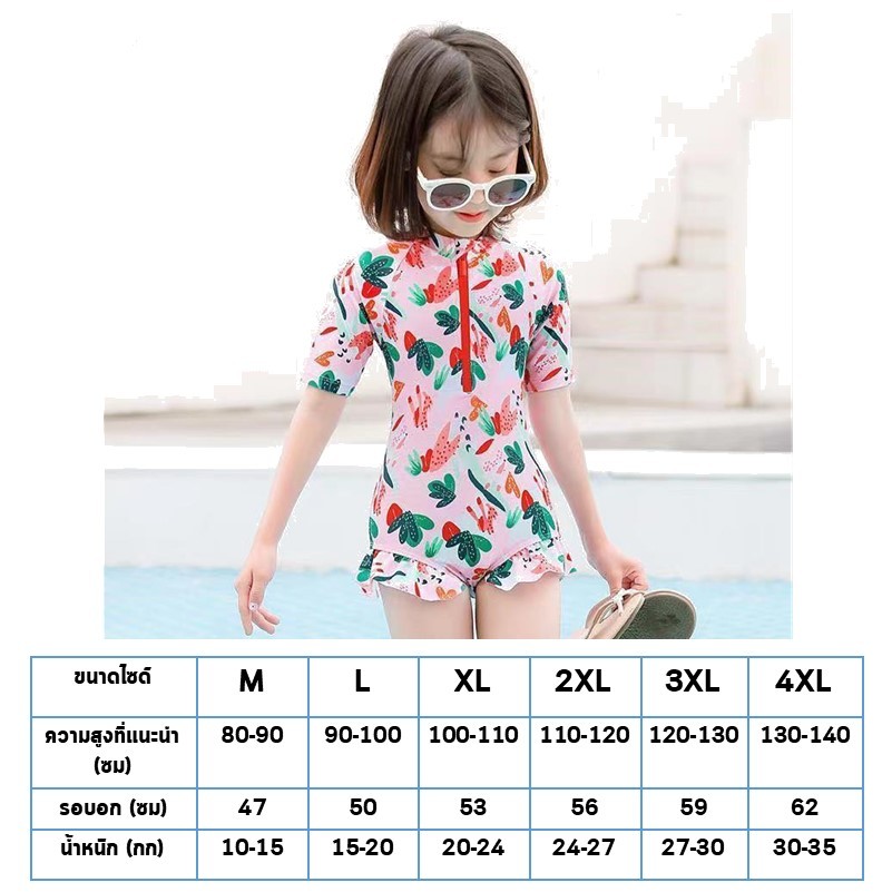 พร้อมส่งจากไทย ชุดว่ายน้ำแฟชั่นเด็กผู้หญิง วันพิช แบบกระโปรงแขนยาวและแขนสั้น และแบบกางเกงขาสั้น สำหรับความสูง 80-140 cm