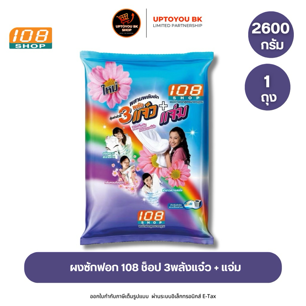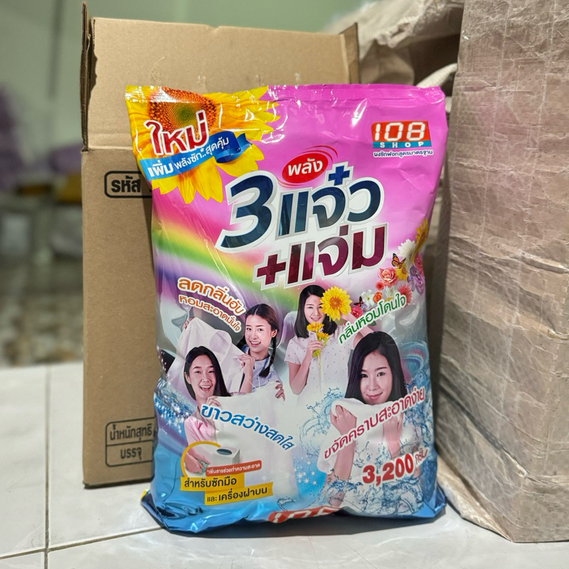 3 พลังแจ๋ว 2600 - 3000 กรัม ผงซักฟอก 108 SHOP ถุงใหญ่ แจ๋วแจ๋ว+แจ่ม สำหรับซักมือ และเครื่องเปิดฝาด้านบน