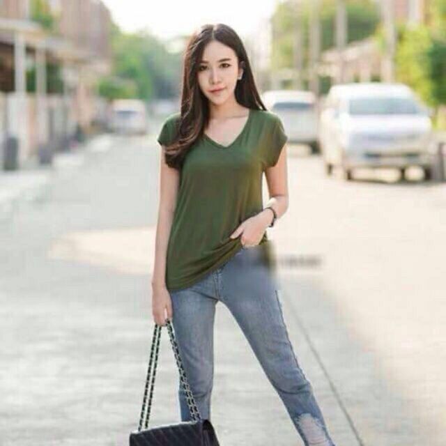 (ขายเทปิดร้าน)เสื้อยืดให้นม(A001)คอยูวี รุ่นแขนล้ำ
