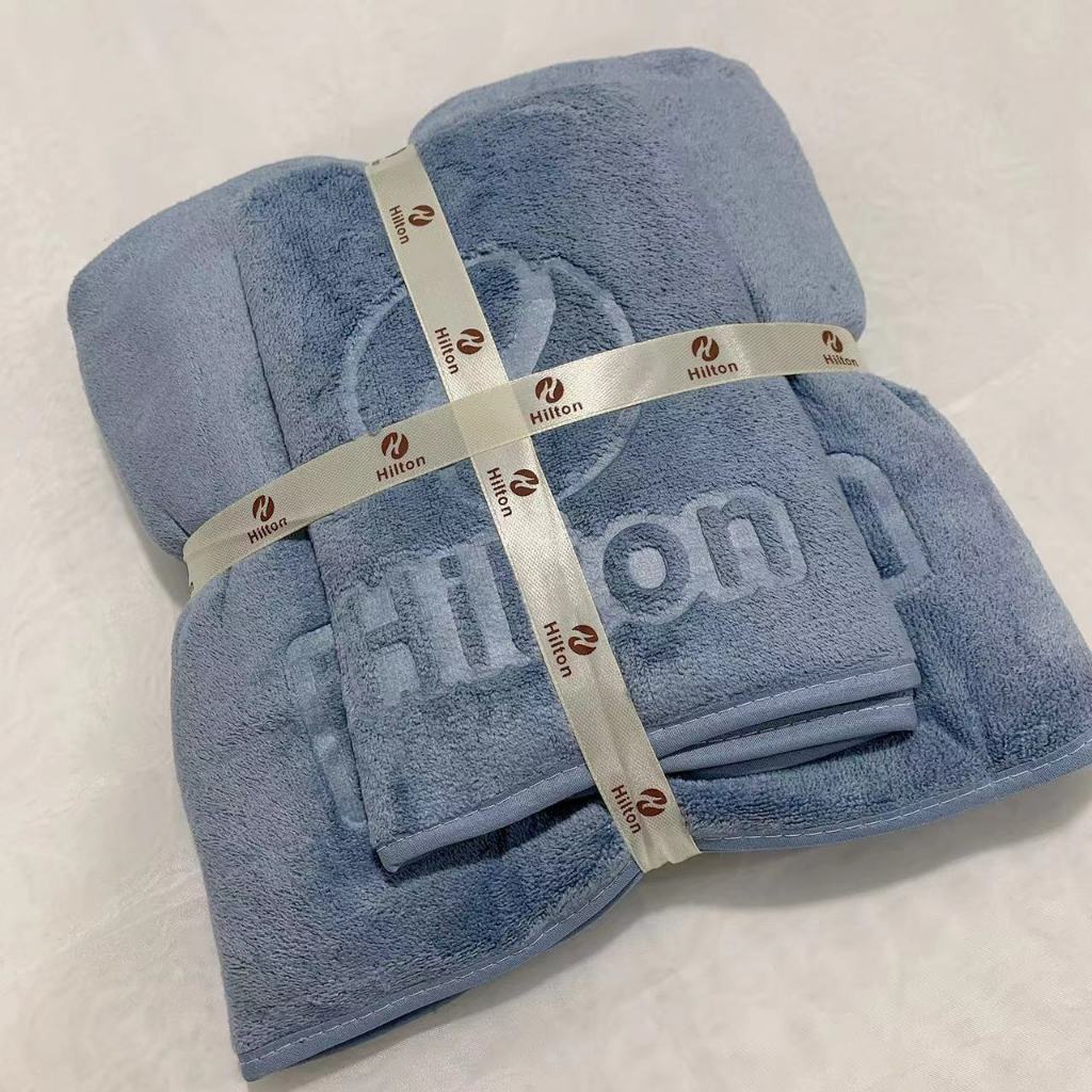 ผ้าเช็ดตัวสีพื้น2ชิ้น [ผ้าเช็ดตัว+ผ้าเช็ดผม] Hilton ผืนใหญ่ 70CMX140CM นุ่มสบายไม่บาดผิว ผ้าหนา #H-YJ