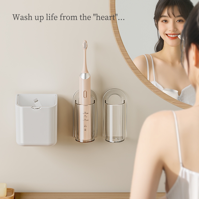 GONQIN ที่วางแปรงสีฟันไฟฟ้า ที่วางแปรงสีฟันติดผนัง ที่วางแปรงสีฟันในห้องน้ํา ชั้นเก็บของ ชั้นวางแปรงสีฟันไฟฟ้า
