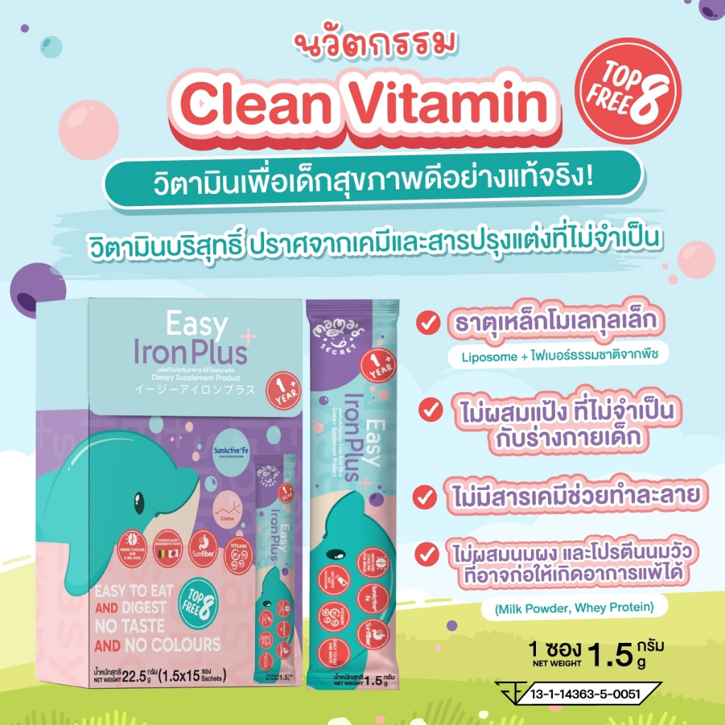 วิตามินธาตุเหล็กโคลีน นวัตกรรมญี่ปุ่น ผสมนมได้ ผสมน้ำได้ ไม่มีสี กลิ่น รส ไม่ผสมนมผง TOP8FREE