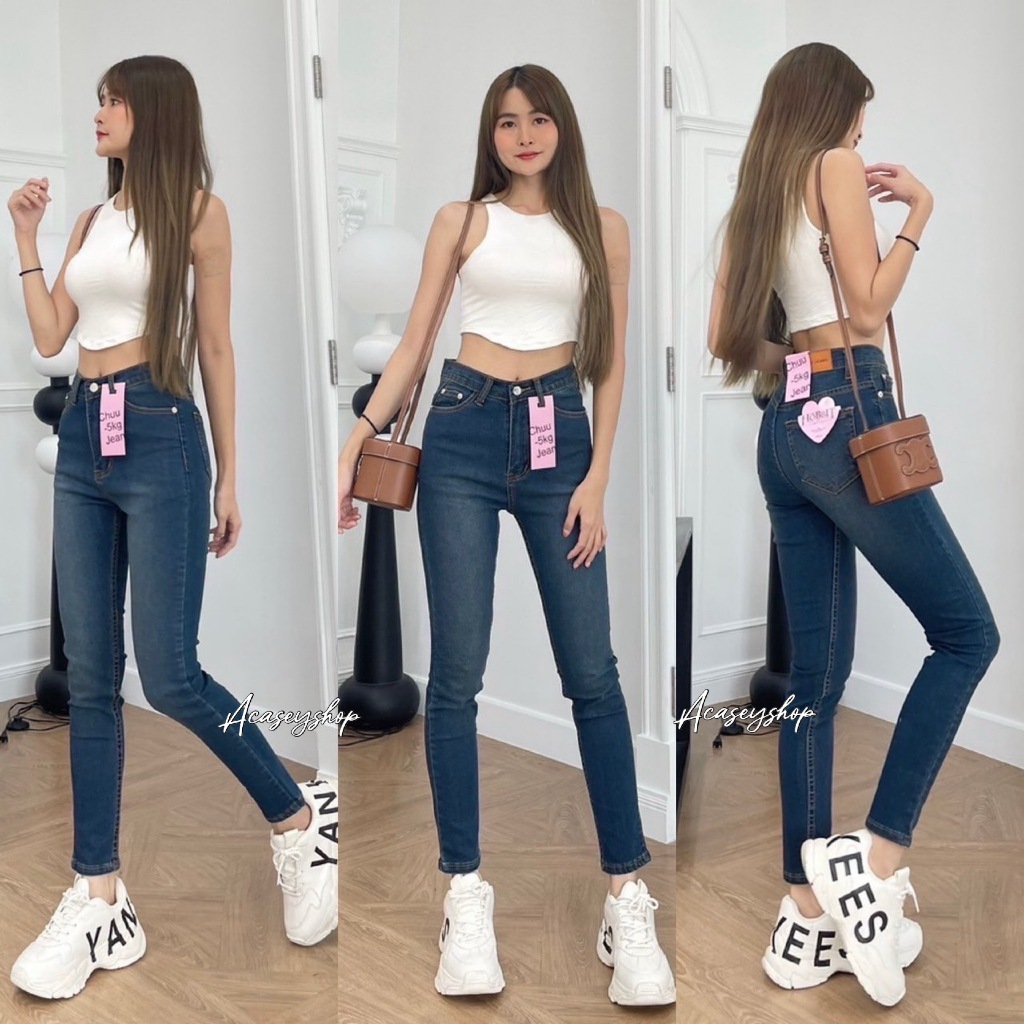 Acasey กางเกงยีนส์ผู้หญิง ขายาว ขาเดฟ Skinny jeans ผ้ายืด Chuu5kg ไซส์ S - 38