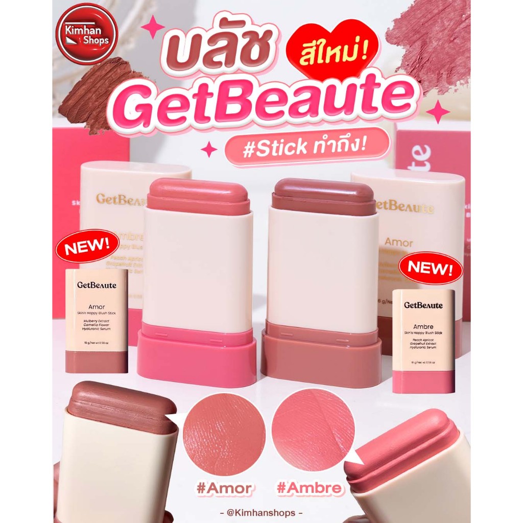 GetBeaute Skin's Happy Blush Stick บลัชออน ปัดแก้ม แก้มฉ่ำ สีธรรมชาติ สีสวย