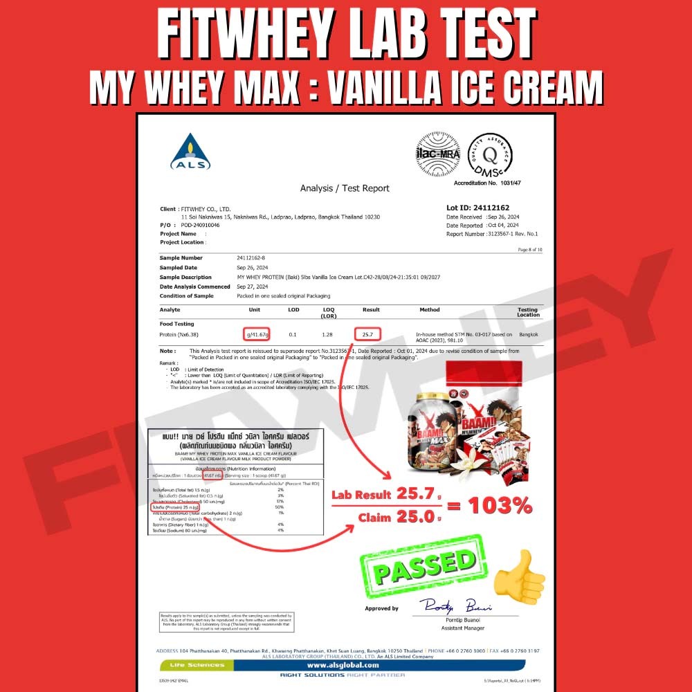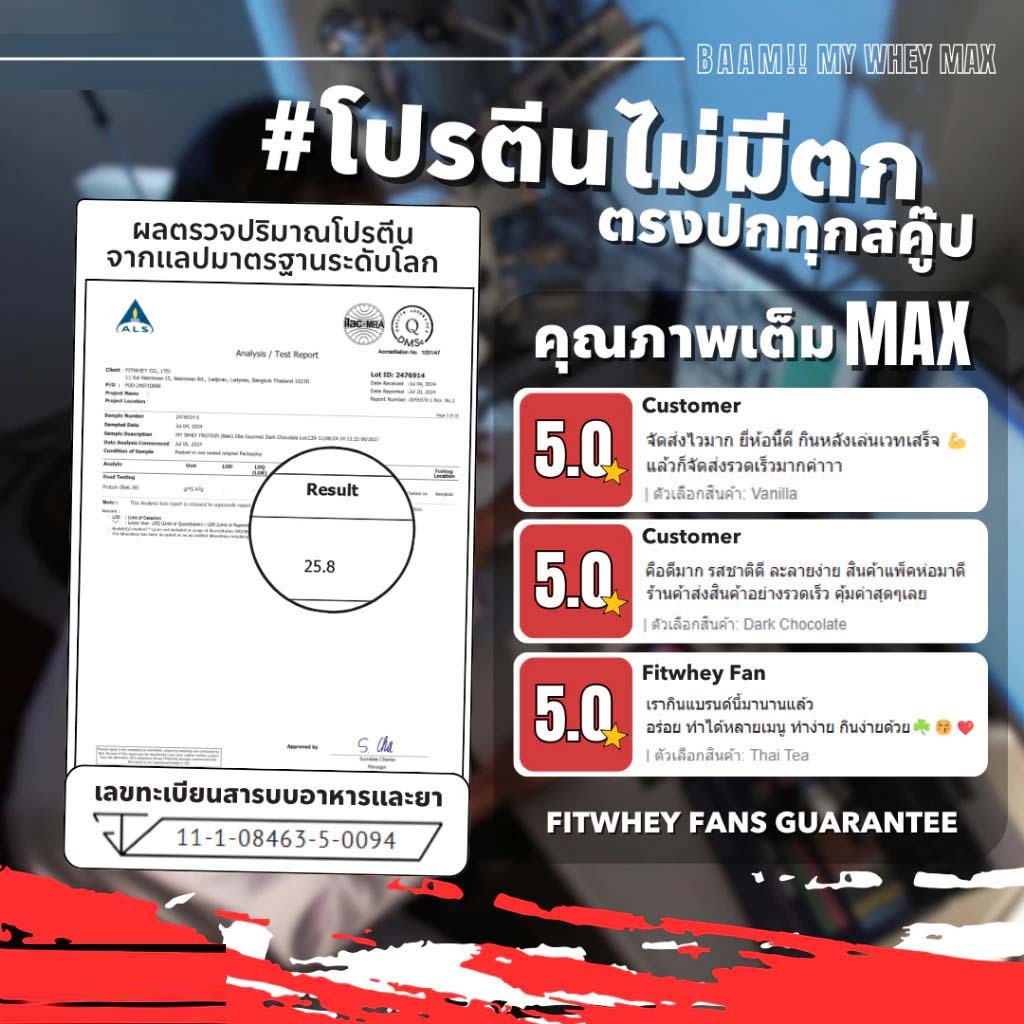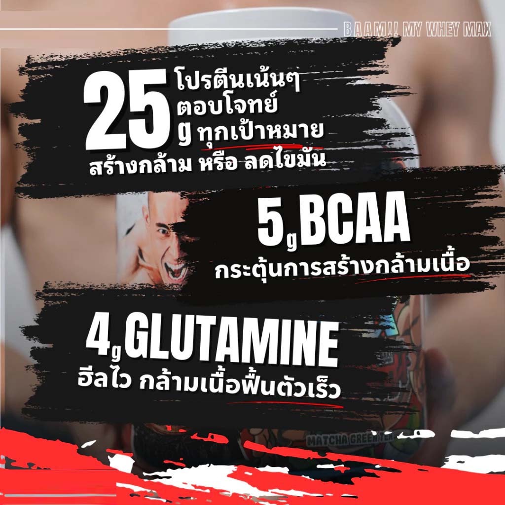 แบ่งขาย BAAM MY WHEY MAX SACHET 1 SERV WHEY PROTEIN เวย์โปรตีน เพิ่มกล้ามเนื้อ ลดไขมัน