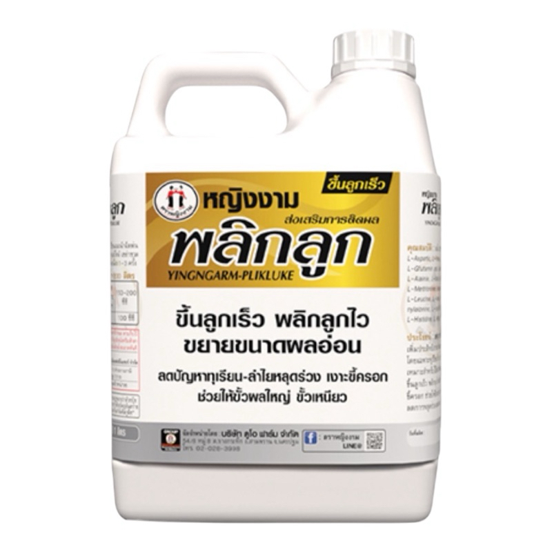 หญิงงามพลิกลูก 5 ลิตร ตราหญิงงาม ขึ้นลูกเร็ว พลิกลูกไว ลดการหลุดร่วง ช่วยขยายขนาดผล