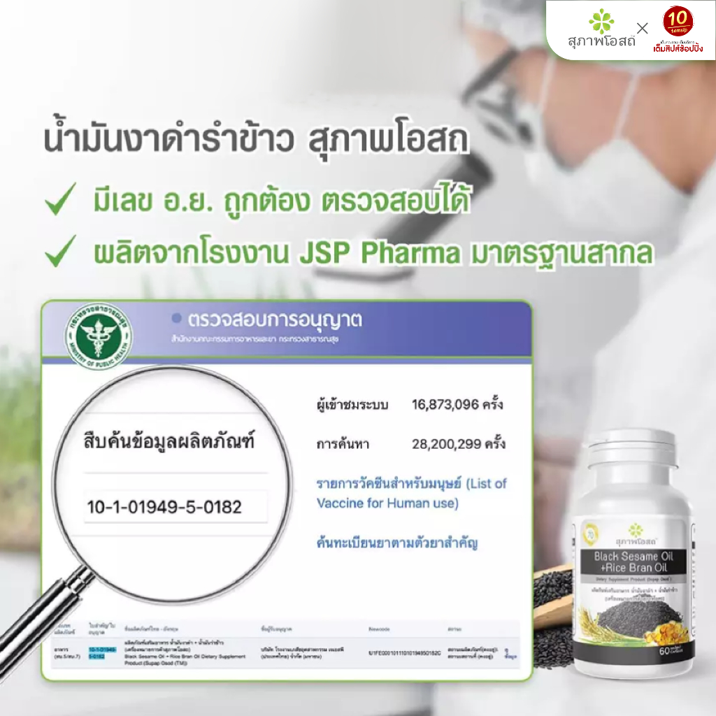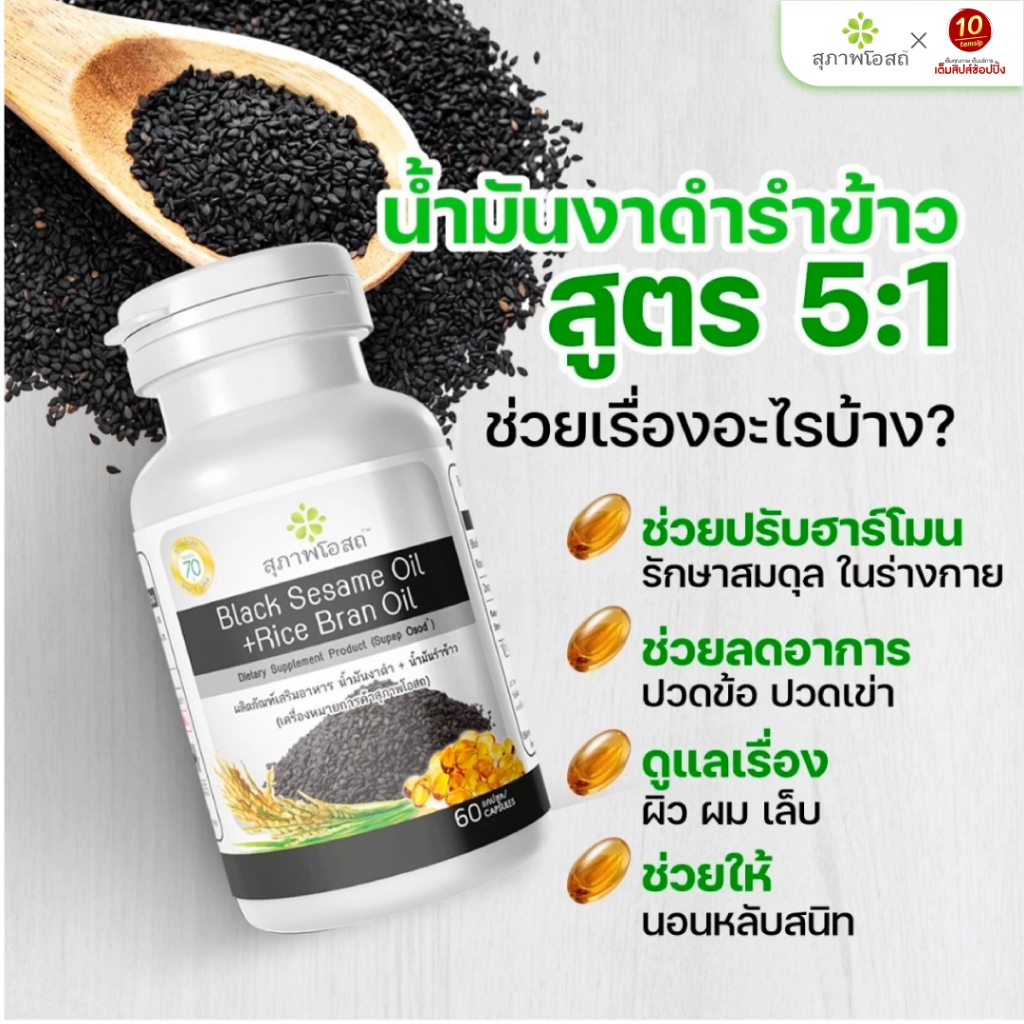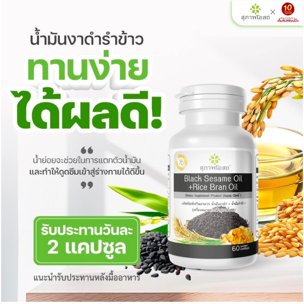 สุภาพโอสถ น้ำมันงาดำรำข้าว ขนาด (250 แคปซูล/กระปุก)