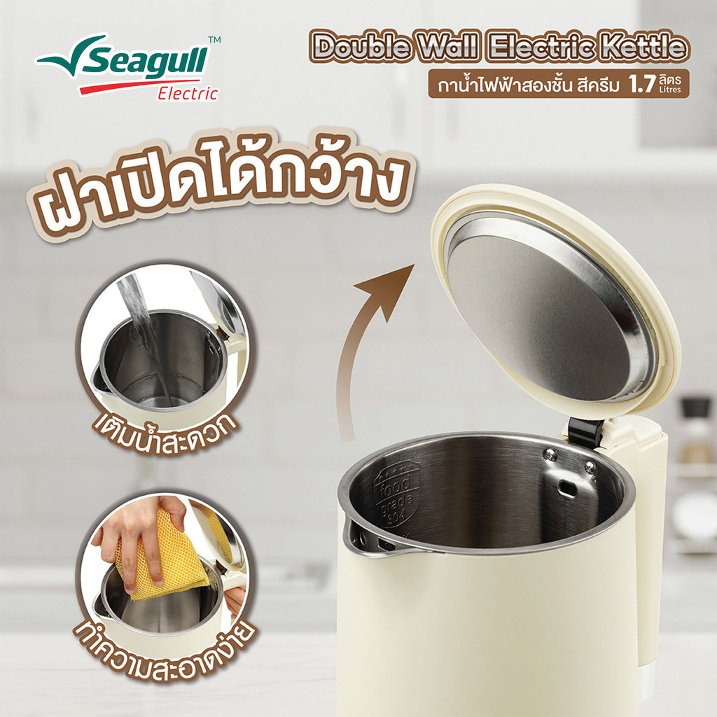 Seagull กาน้ำไฟฟ้าสองชั้น 1.7 ลิตร (สีครีม) DoubleWallElectric Kettle กาสองชั้น กามินิมอล กาต้มน้ำ