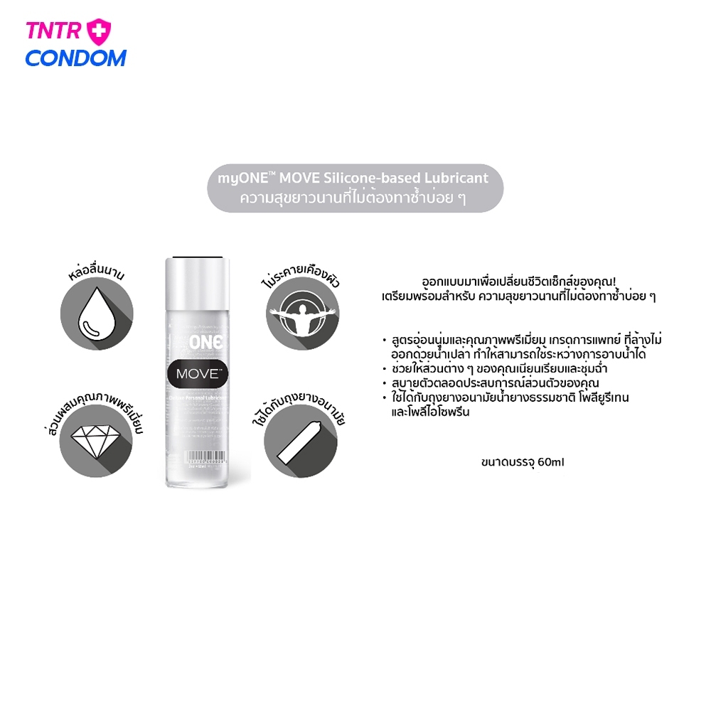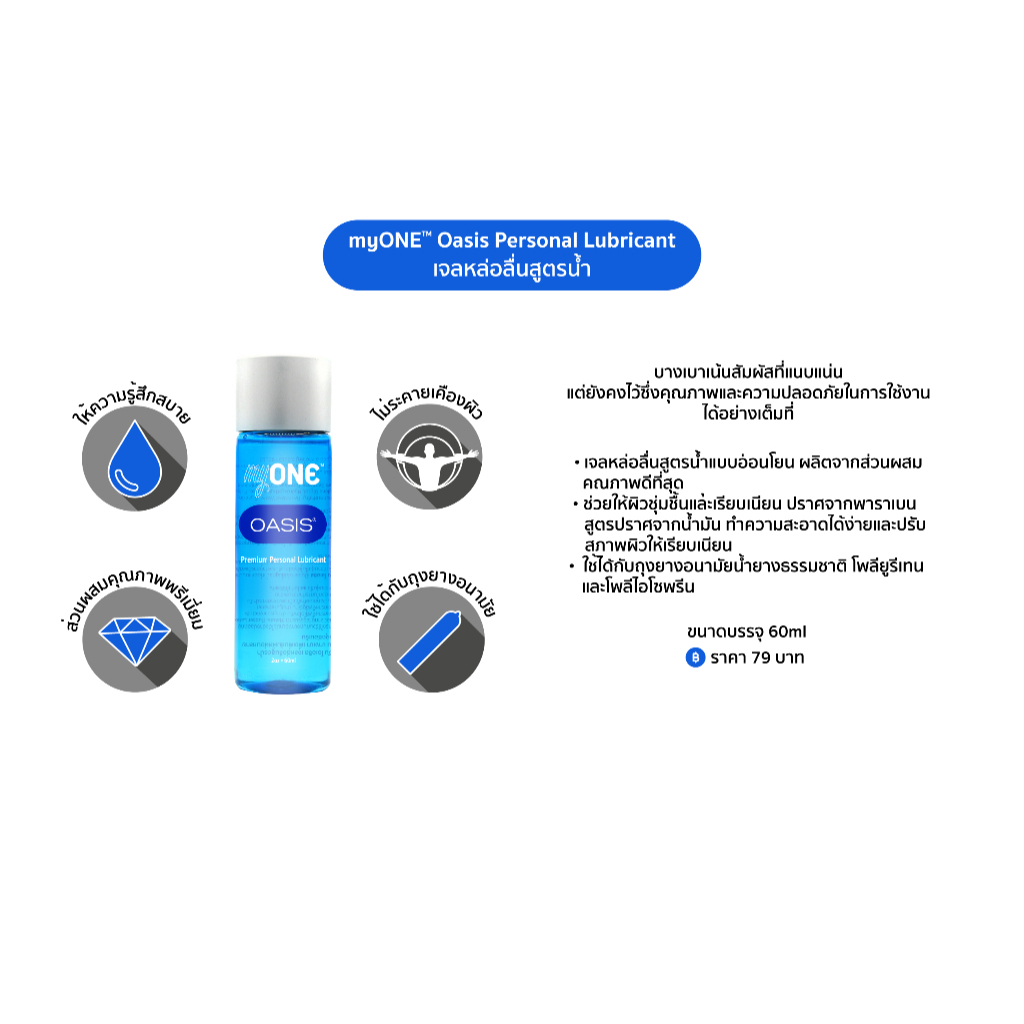 เจลหล่อลื่น มายวัน myONE Lubricant Gel ( Oasis สูตรน้ำ, Move สูตรซิลิโคน , Silk ผสม ) 60 มล. [1 ขวด]