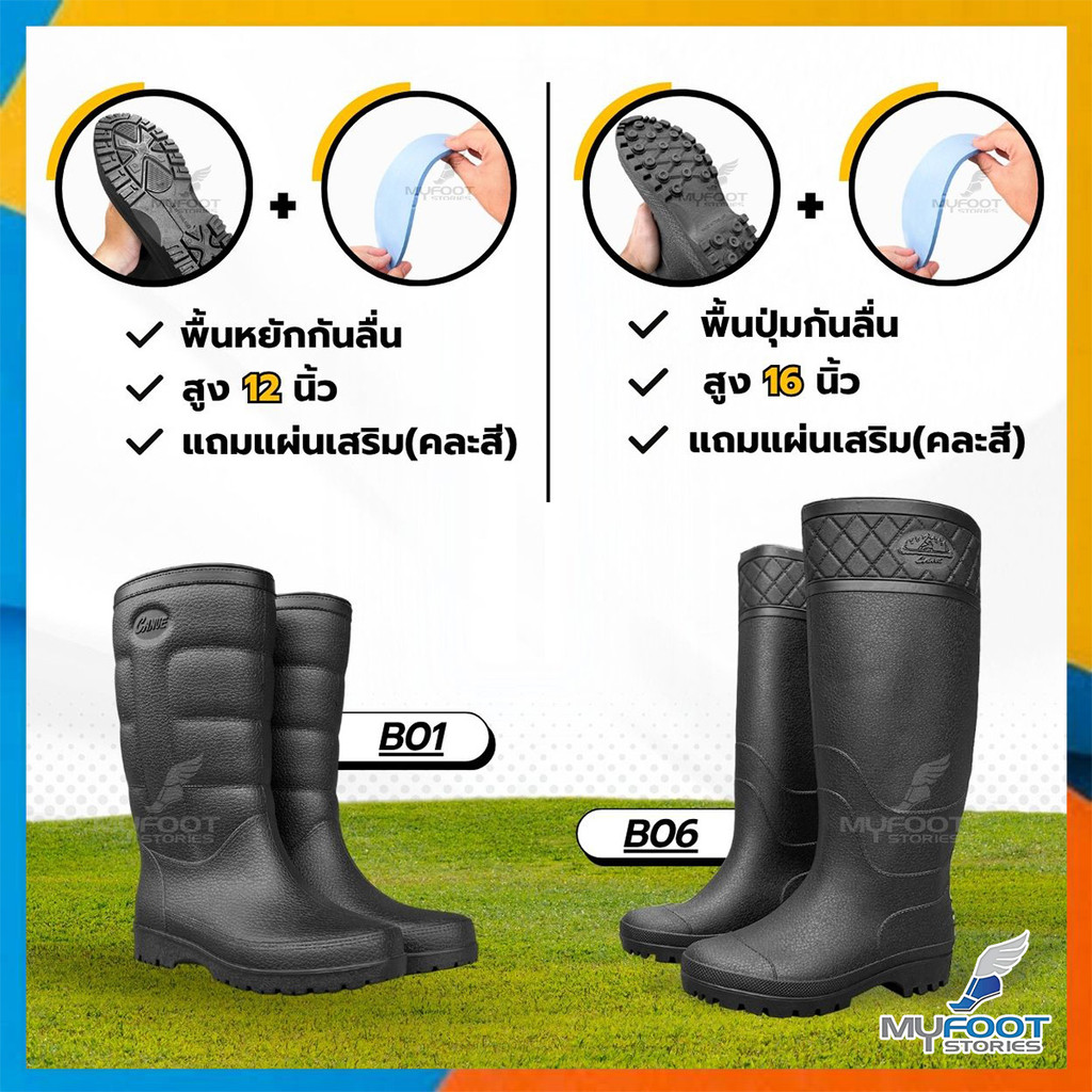Canue รองเท้าบูทกันน้ำ PVC บูทกันน้ำ รุ่น B01 - 12นิ้ว/ B06 - 16 นิ้ว กันลื่นได้ดี ใส่ลุยน้ำ ทำสวน