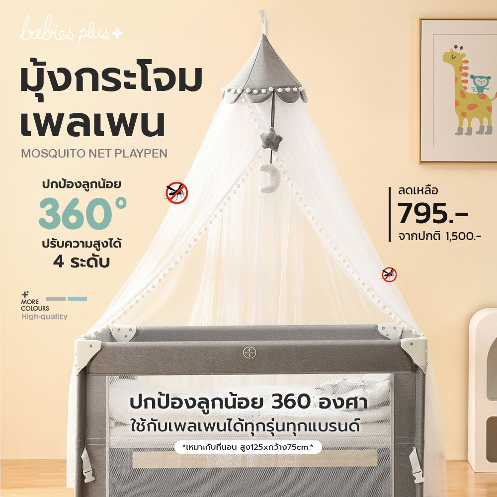 PAPA BABY มุ้งกันยุงสำหรับเด็ก รุ่น CARNB001 มุ้งกระโจมเพลเพนแบบมีเสา พร้อมโมบาย