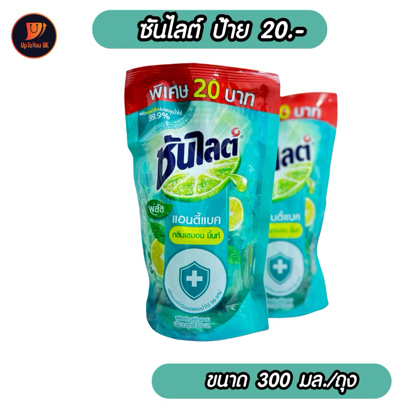 1 ถุง Sunlight ซันไลต์ พลัส น้ำยาล้างจาน สูตเลม่อนเทอร์โบ / แอนตี้แบคทีเรีย กลิ่นเลมอนมิ้นท์ 300-500 มล.