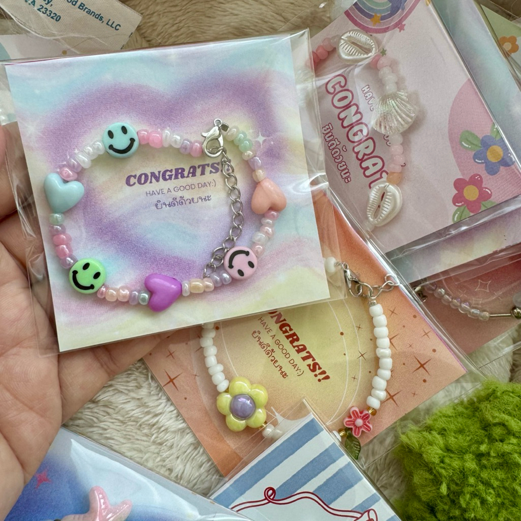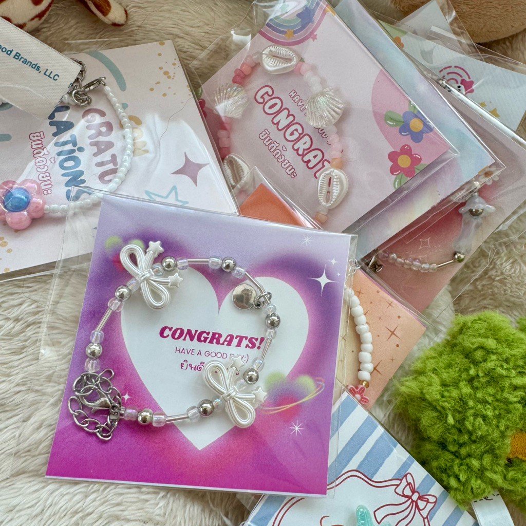 ของแจกปัจฉิม ของขวัญปัจฉิม การ์ด+สร้อยข้อมือ พร้อมแพ็คเกจน่ารักทุกลาย (ร้านส่งคละลาย)
