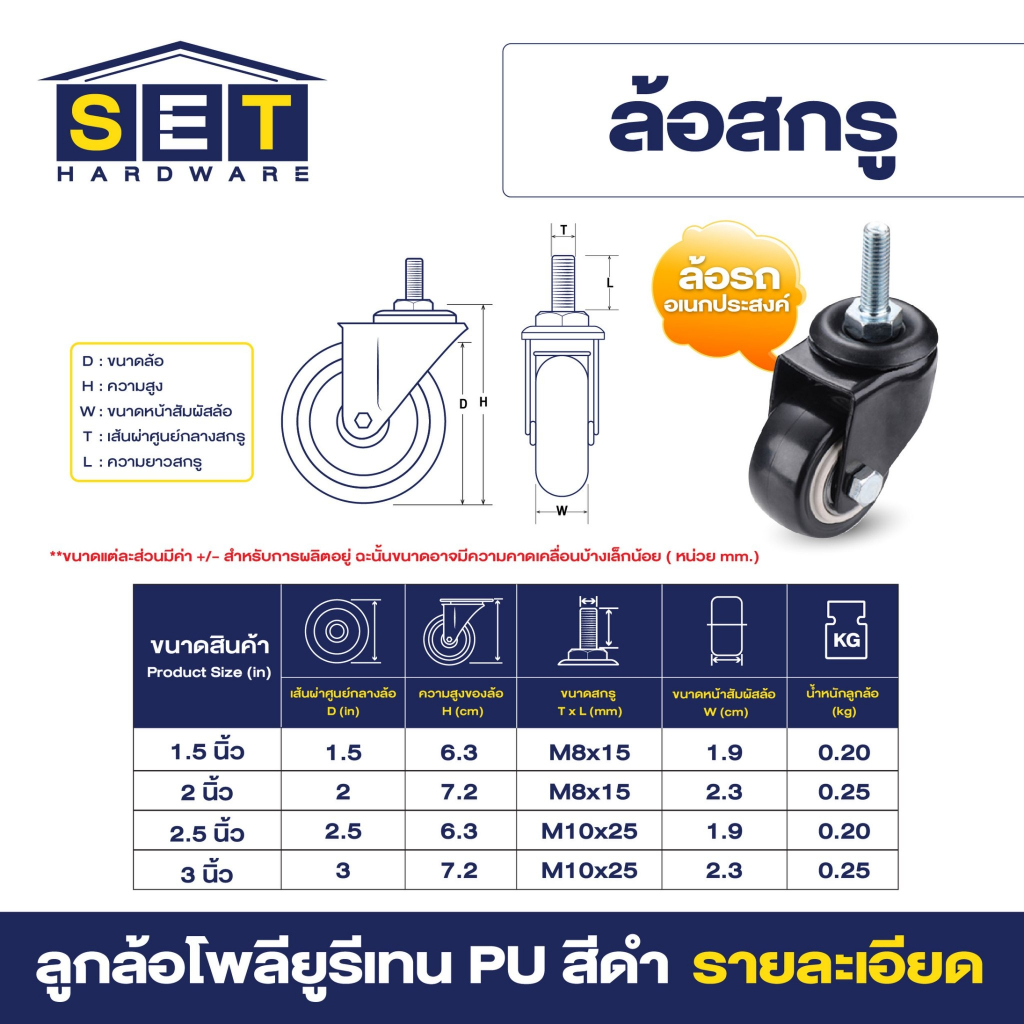 ลูกล้อ PU สีดำ มี 5 แบบ 1.5นิ้ว 2นิ้ว โพลียูรีเทน อุปกรณ์งานช่าง ล้อรถเข็น